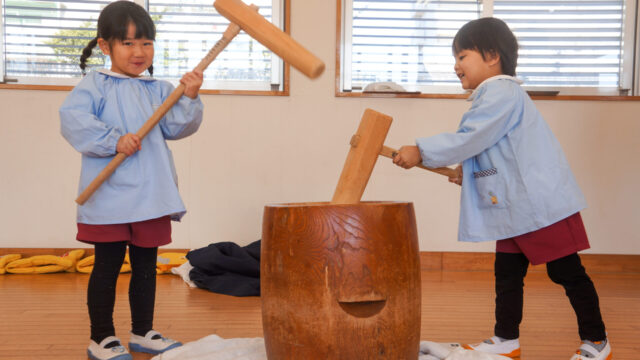 3学期始業日・もちつきごっこ