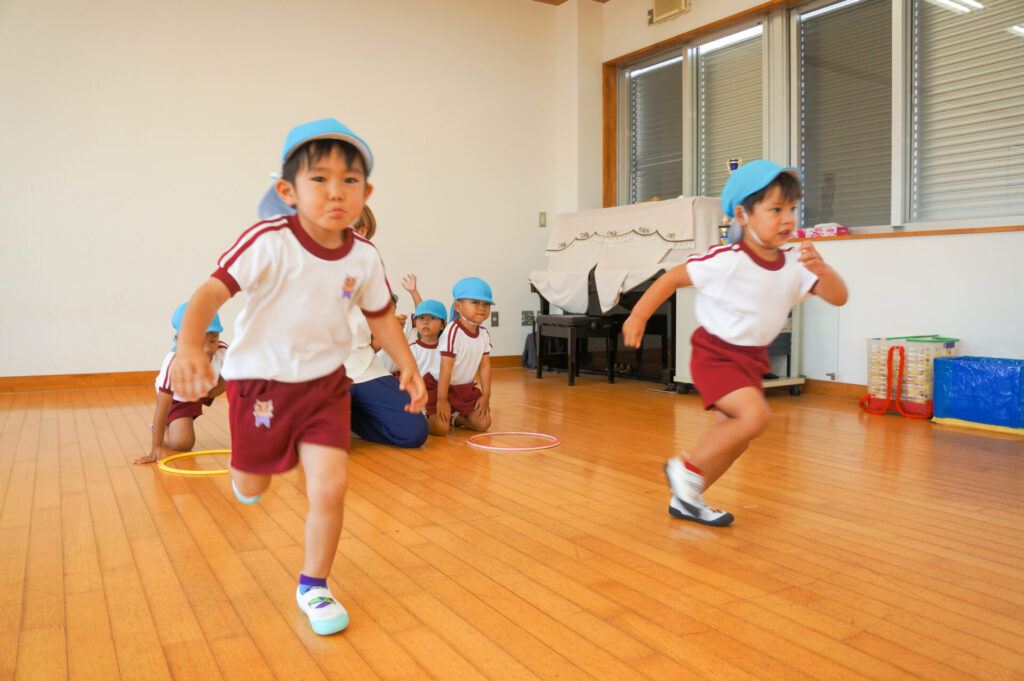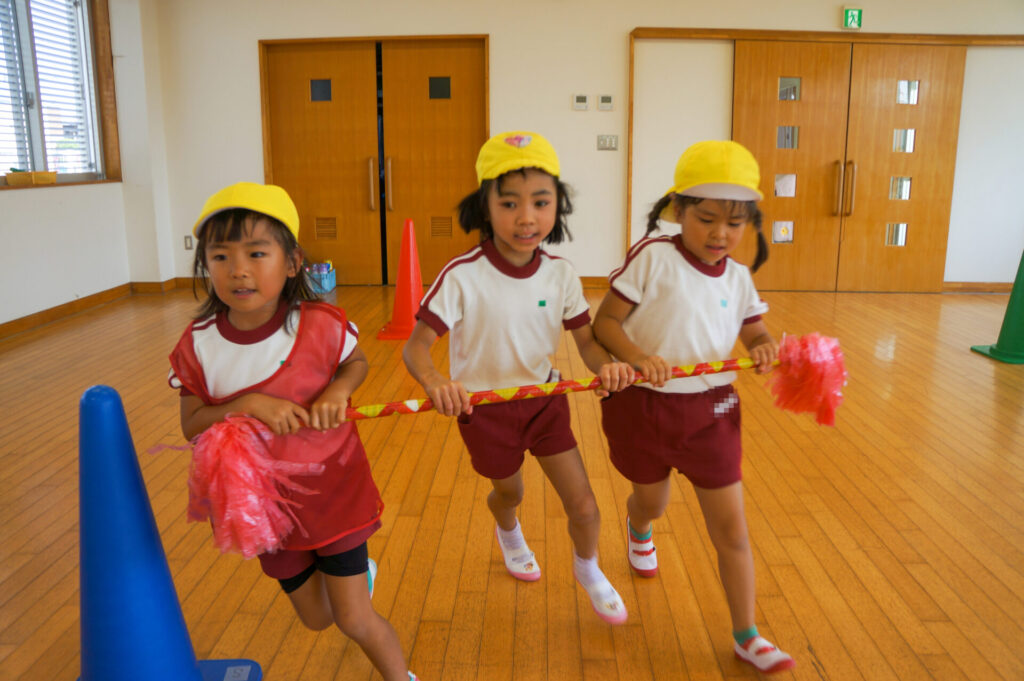 年長つき組は勝敗の意識を持ち、勝ちたい!!という気持ちが全面にでてきたように感じます。当日は、まどか幼稚園の友だちと一緒に勝負をします!1位目指して頑張りましょう。