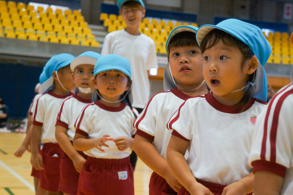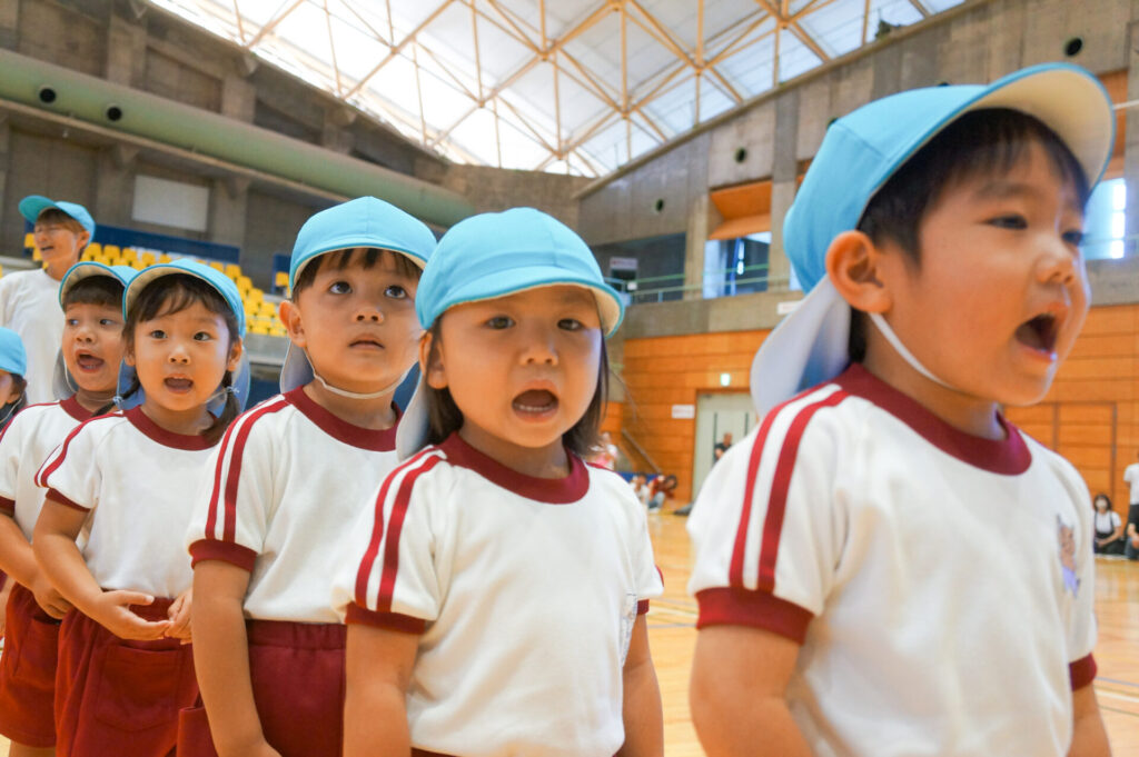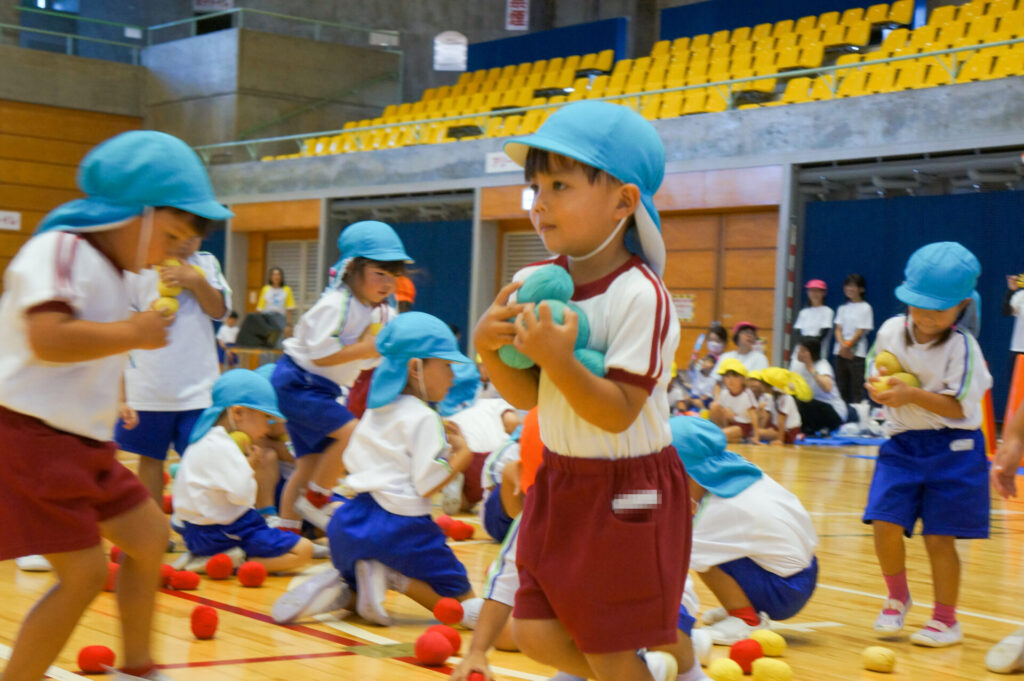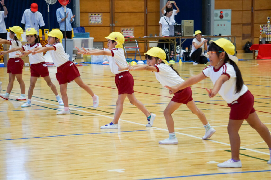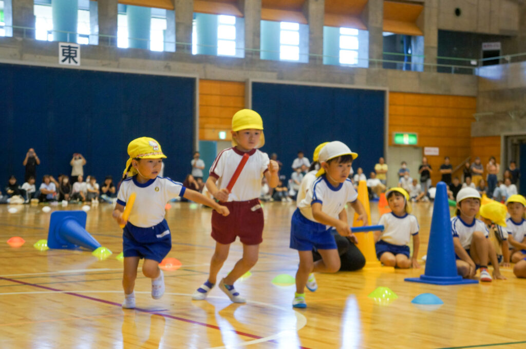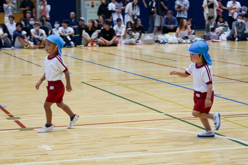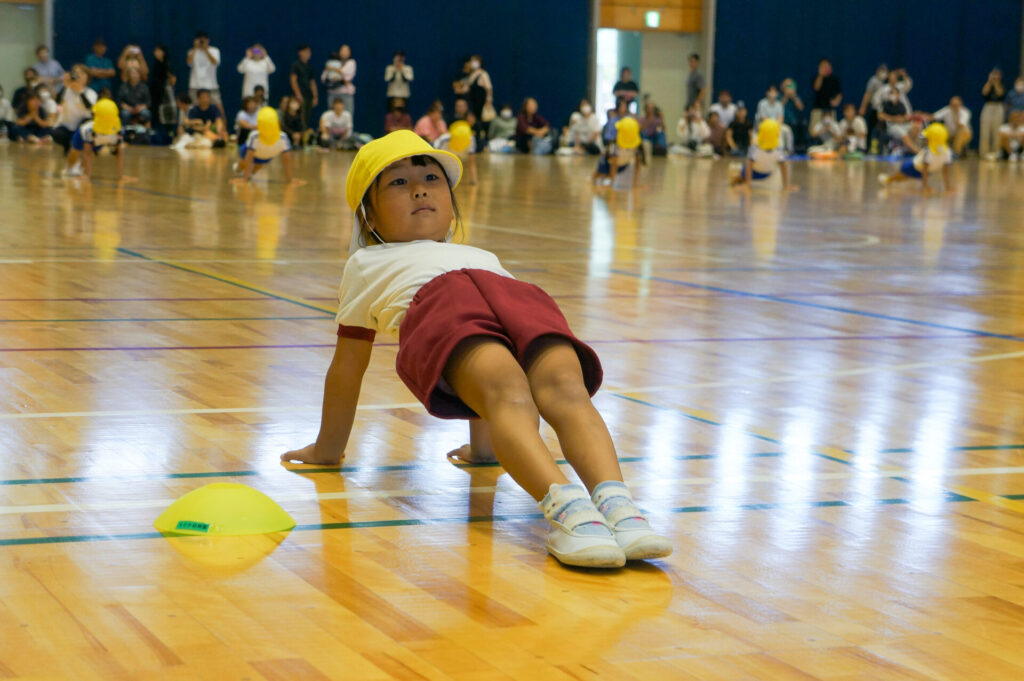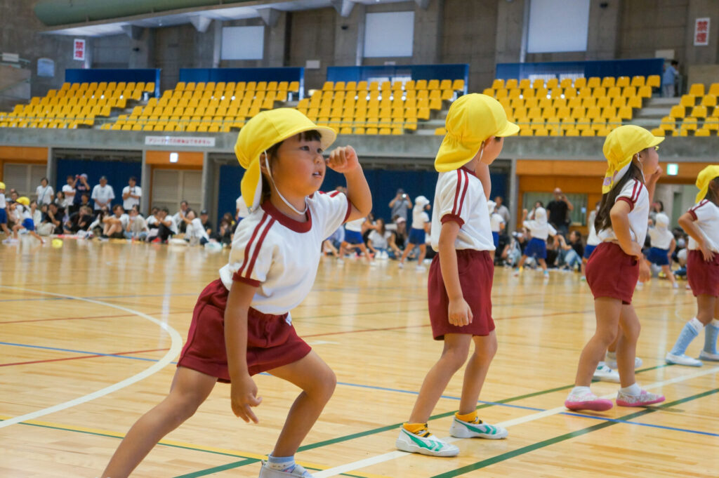 今年もまどか幼稚園・すみれ台幼稚園合同でシーガルドーム:メインアリーナにて運動会を行いました。「動物」をテーマに、年長つき組は「サメチーム」、年少ゆり組は「いぬチーム」でのまどか幼稚園と対戦しました。