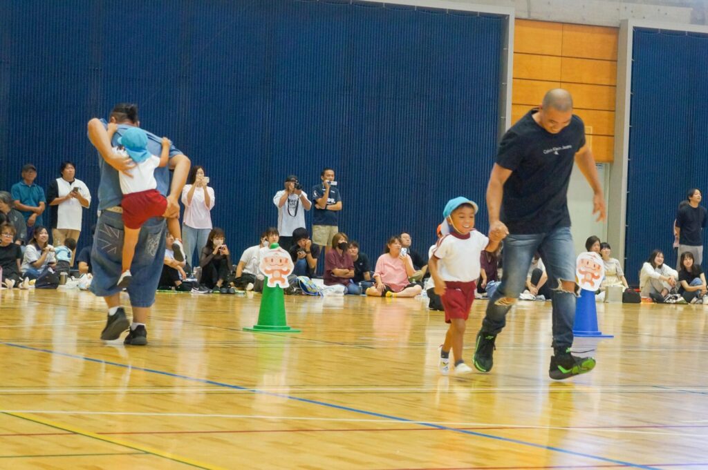 そして、最後は毎年恒例「チーム対抗リレー」です。差が縮んだり、順位が入れ替わったりするたびに歓声が沸き、拍手も大きくなり、アリーナ内がひとつになった瞬間でもありました。温かい応援を受けて見えない力を大いに発揮した、つき組さんに惜しみない拍手が送られました。たくさんの方々が応援してくれたことをいつまでも忘れないでいてほしいと願っています。
