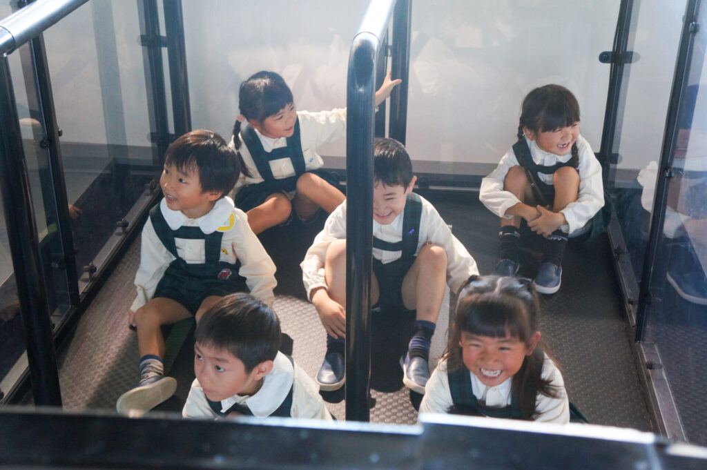 「地震体験」では、震度7の揺れ体験をしました。怖かったという子もいましたが、実体験を通して、地震の恐ろしさを体験できました。「余震」の意味も教えていただき、またひとつ防災意識も高まりました。