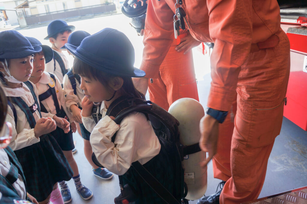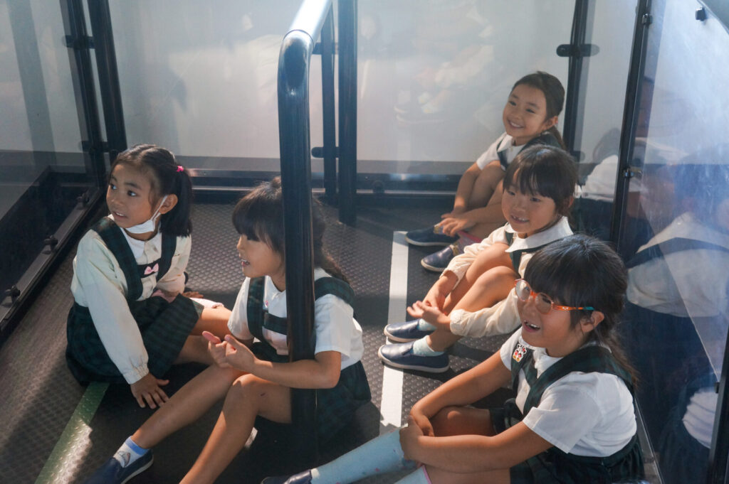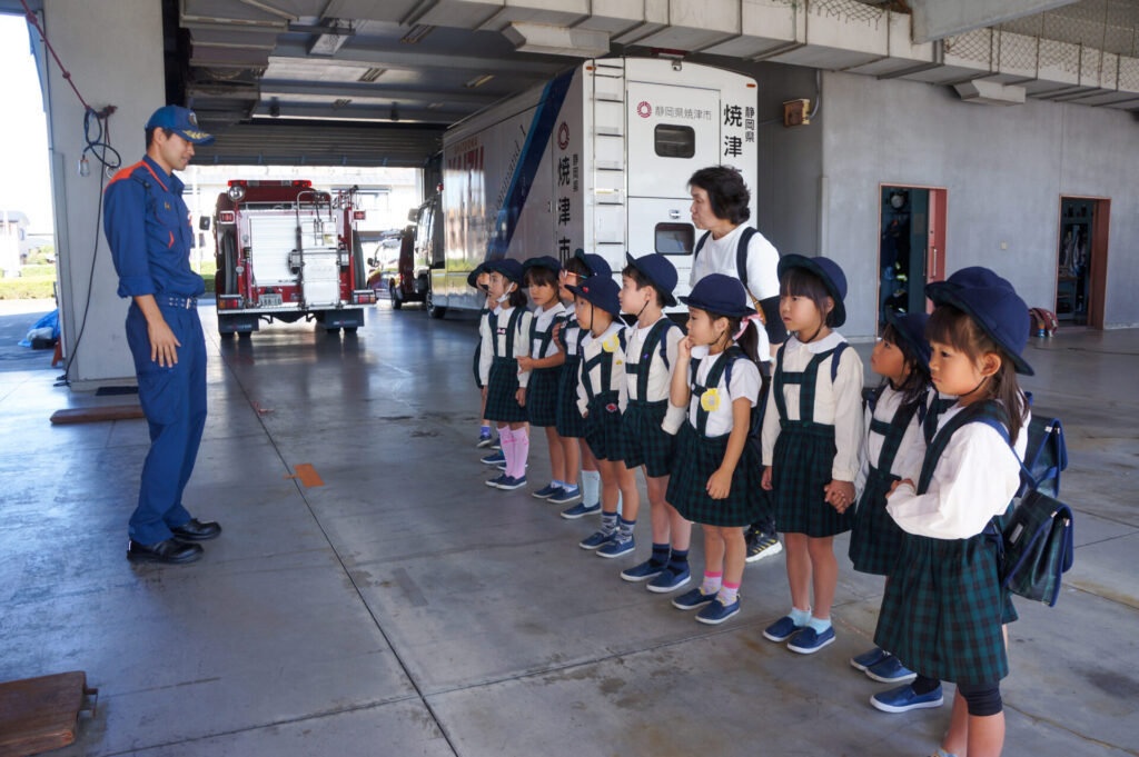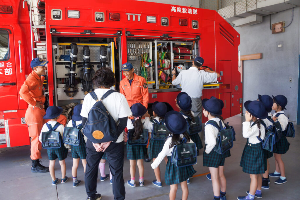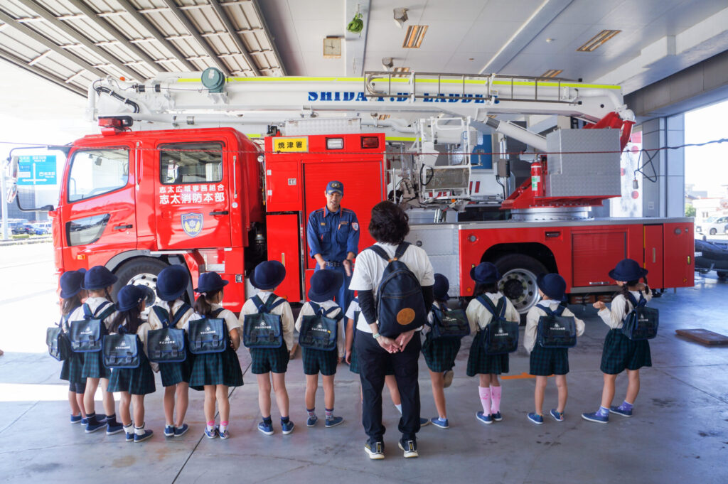 年長つき組がスクールバスに乗って「消防防災センター」へ防災体験へ出かけました。