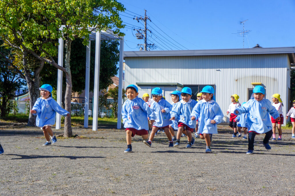 今日も秋晴れ!体を動かすと汗がにじみ、子どもたちも元気に戸外で遊んでいます。園庭を走ったり、うんていや鉄棒、縄跳びにも挑戦し体作りをしているすみれっこです。ミニ運動会も11月に予定しているので、同じチームの友だちと協力して優勝目指したいと思っています。