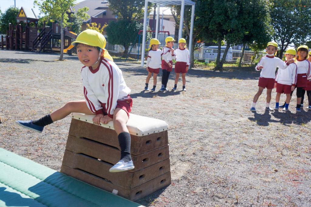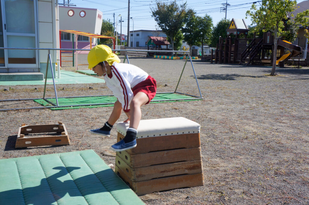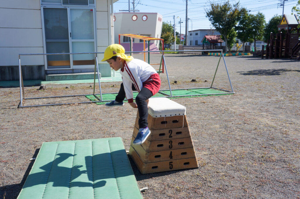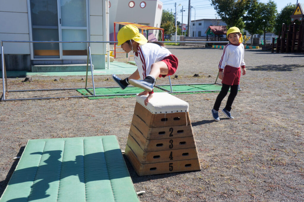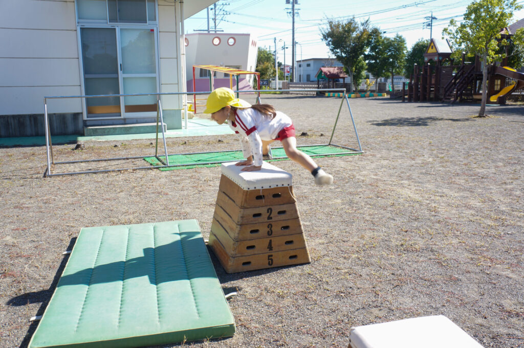 そして、つき組は「跳び箱」にも挑戦しています!4段を跳べたら5段へ!横向きを跳べたら縦向きへ!個々に合わせて挑戦できるようにしています!今日も「できた!!」という嬉しそうな声がたくさん聞くことができました。