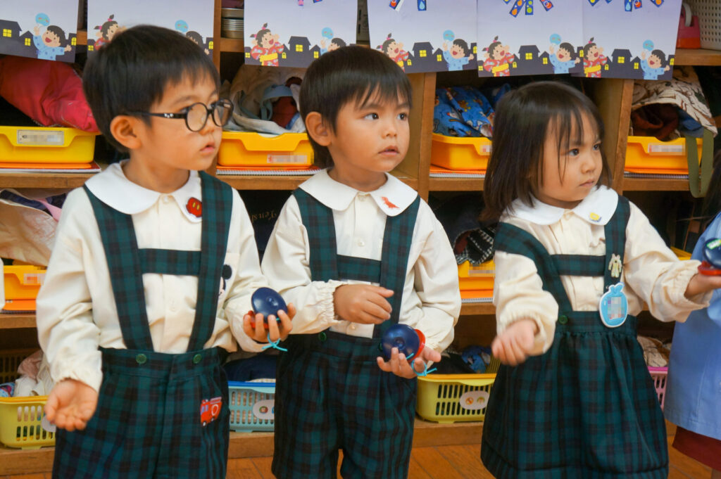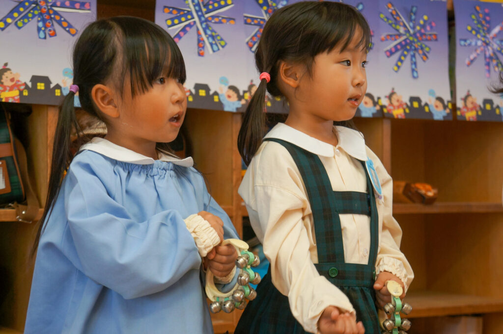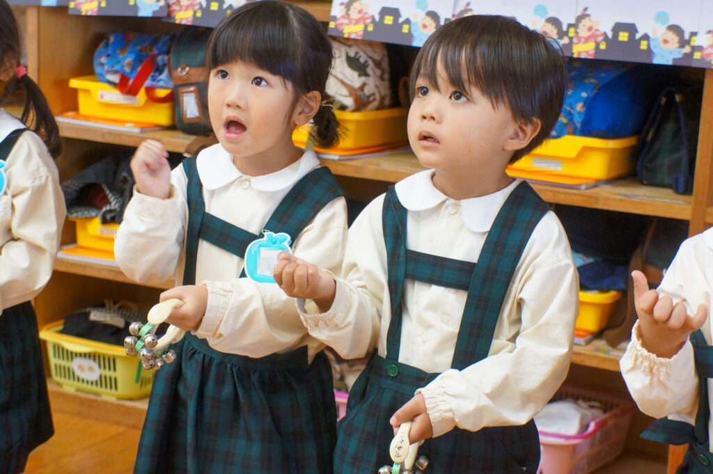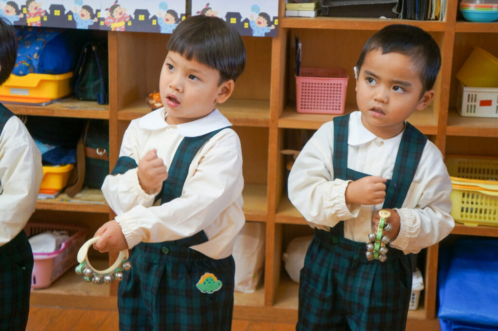 音楽発表会に向けて、年少ゆり組の子どもたちも楽器遊びを楽しんでいます。