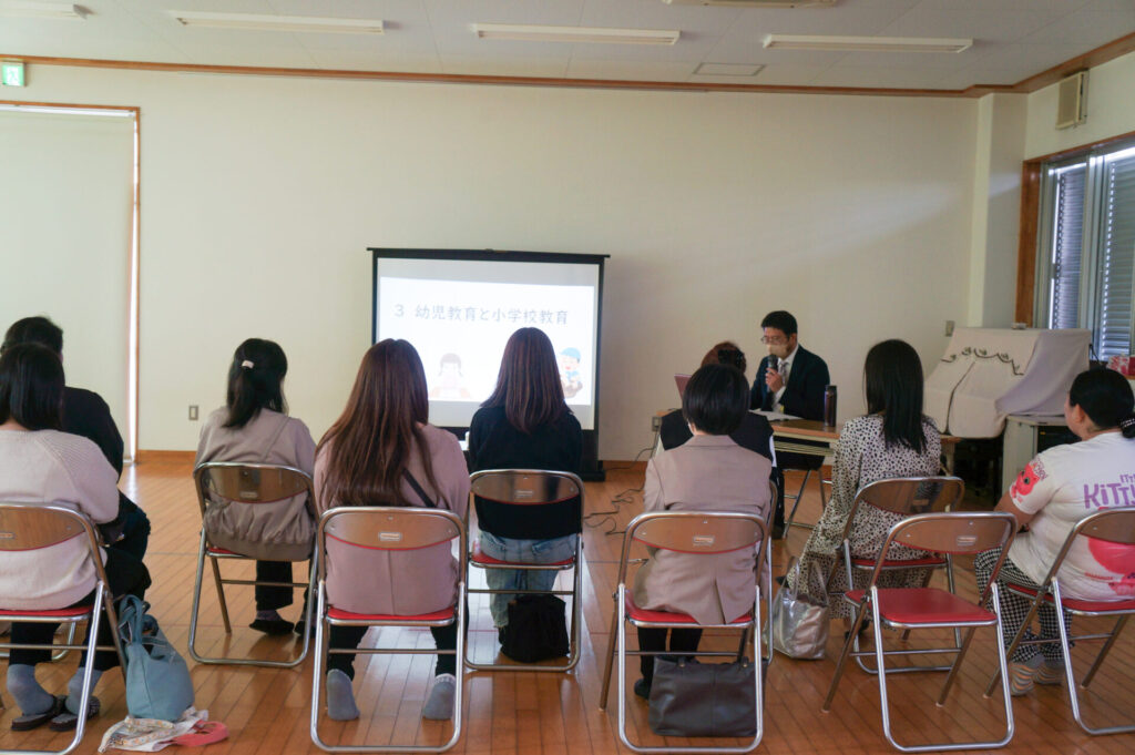 お知らせ 入学安心プロジェクト sumiredaihp 2025年11月11日 本日、「入学安心プロジェクト」を行いました。幼児教育と小学校教育の円滑な取組のひとつとして、和田小学校の相馬校長先生に来園していただき、小学校入学後の教育活動、学校生活について、話をいただきました。 幼稚園と小学校の生活の違いを映像で紹介していただくとともに、日々の生活の中でたくさん「共感」してあげてほしいと、お話いただきました。 園生活も残り5ヶ月あまりとなりました。充実した毎日が送れるようにたくさん励ましてあげたいと思います。ご参加いただきました保護者の皆さま、ありがとうございました。
