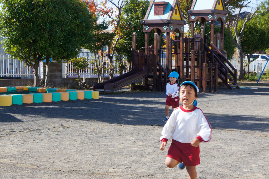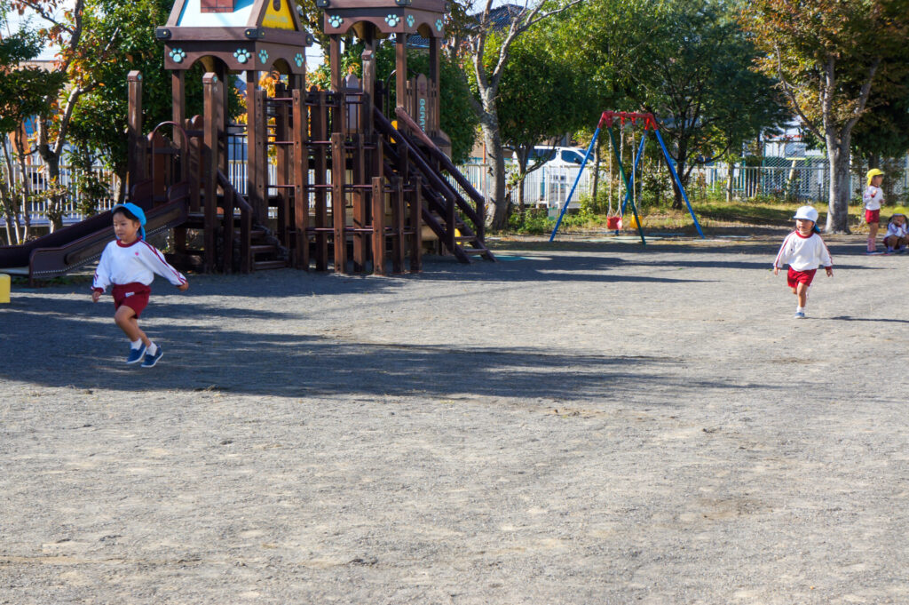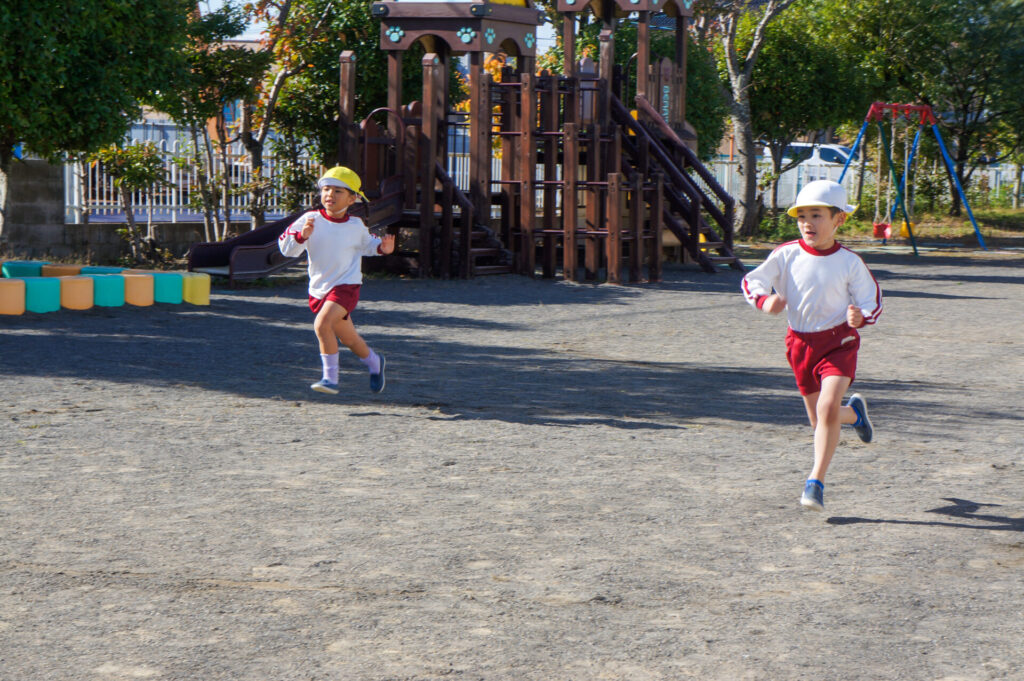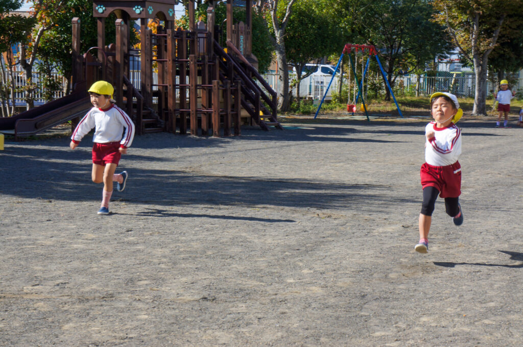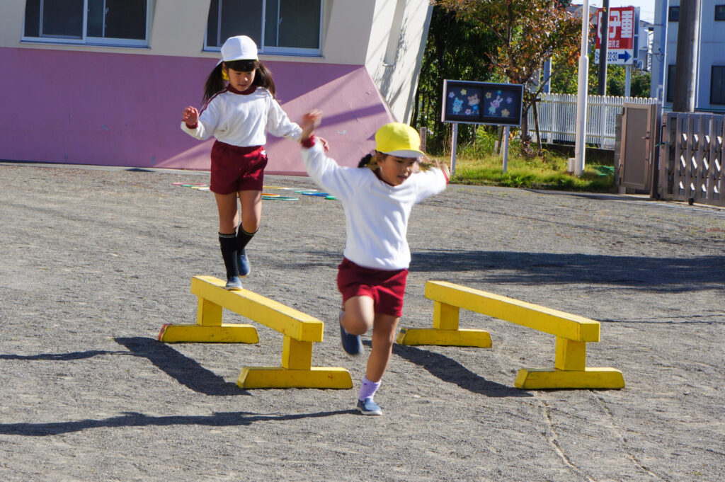 2人で約20mの競走です。合図を聞いてスタートし、ゴールまで走り抜けることも上手になりました。一緒に走る人が気になるけど「前を見て走る!!」おもいきり園庭を走りました。