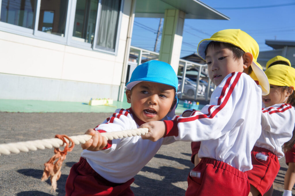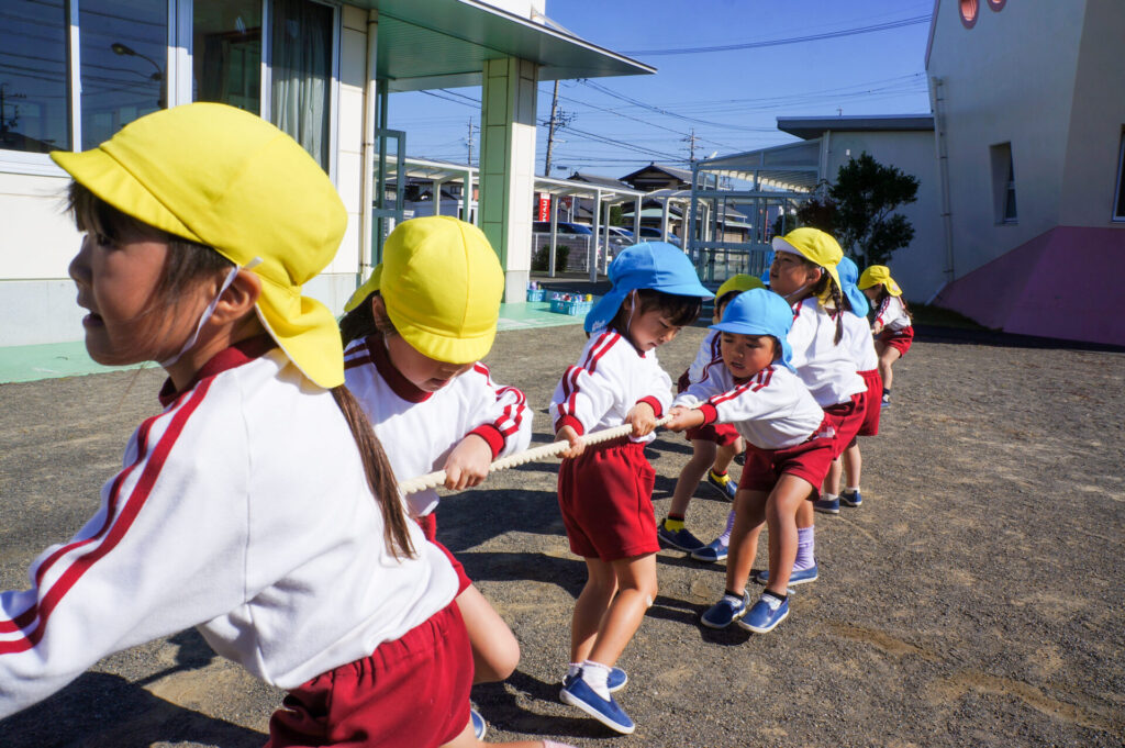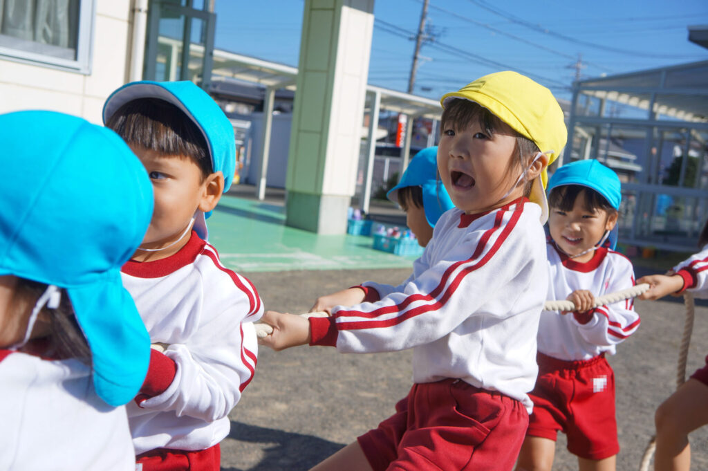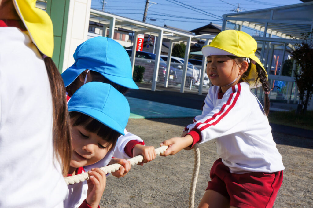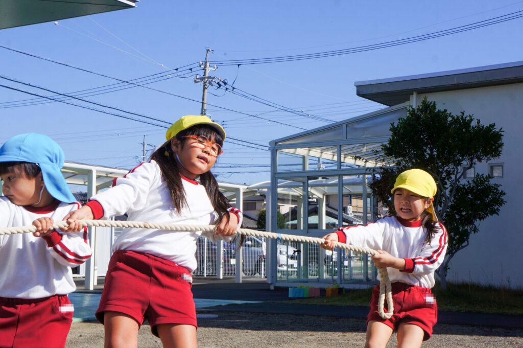 綱を持つ手や体重のかけ方など遊ぶ中で身についてきました。「そーれ そーれ!」のかけ声も元気に響き渡りました。年長児の力強さを感じました。