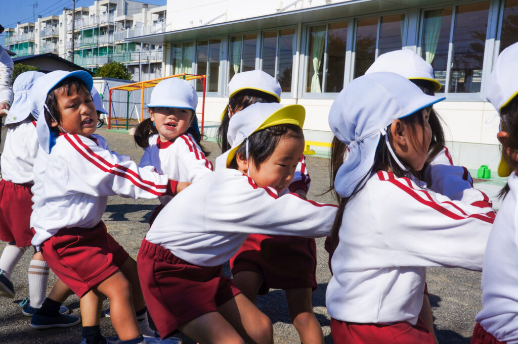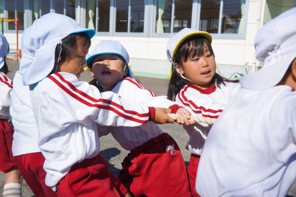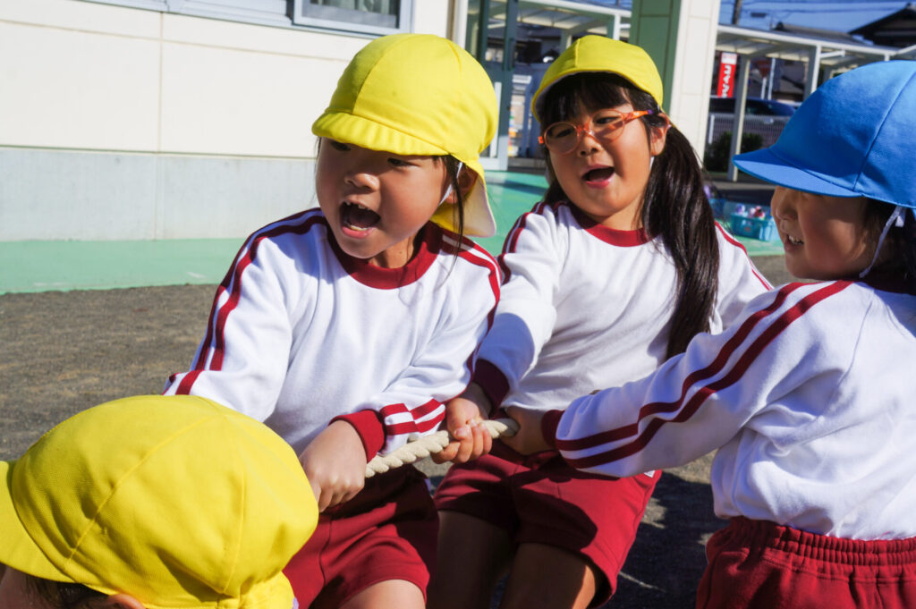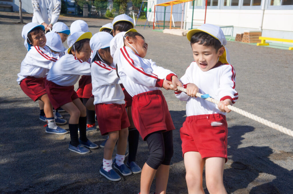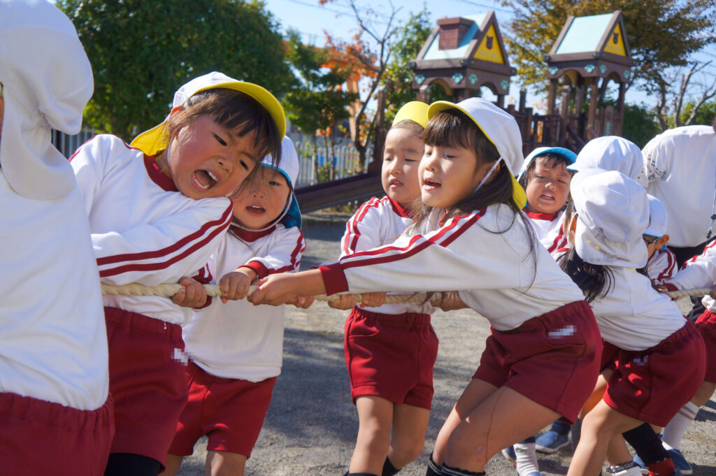 綱を持つ手や体重のかけ方など遊ぶ中で身についてきました。「そーれ そーれ!」のかけ声も元気に響き渡りました。年長児の力強さを感じました。