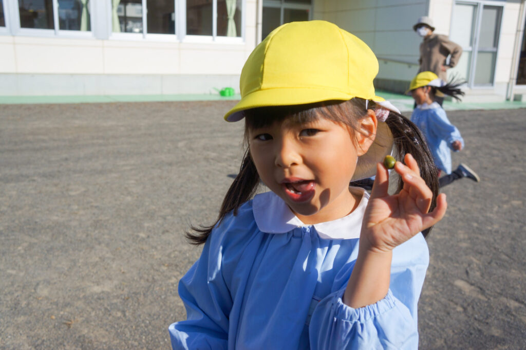 朝晩はぐっと冷え込む日が増えてきました。日中は温かい日差しを浴びながら子どもたちは元気に戸外で遊んでいます。園内にあるどんぐりの木も、黄緑から茶色に色付き始めました。毎朝、どんぐりの木を見上げたり園庭に落ちているどんぐりを拾い集めて遊んでいる子どもたちです。