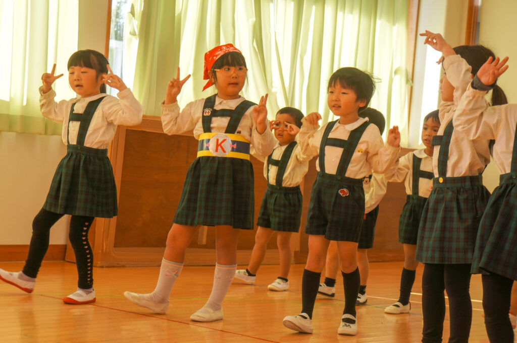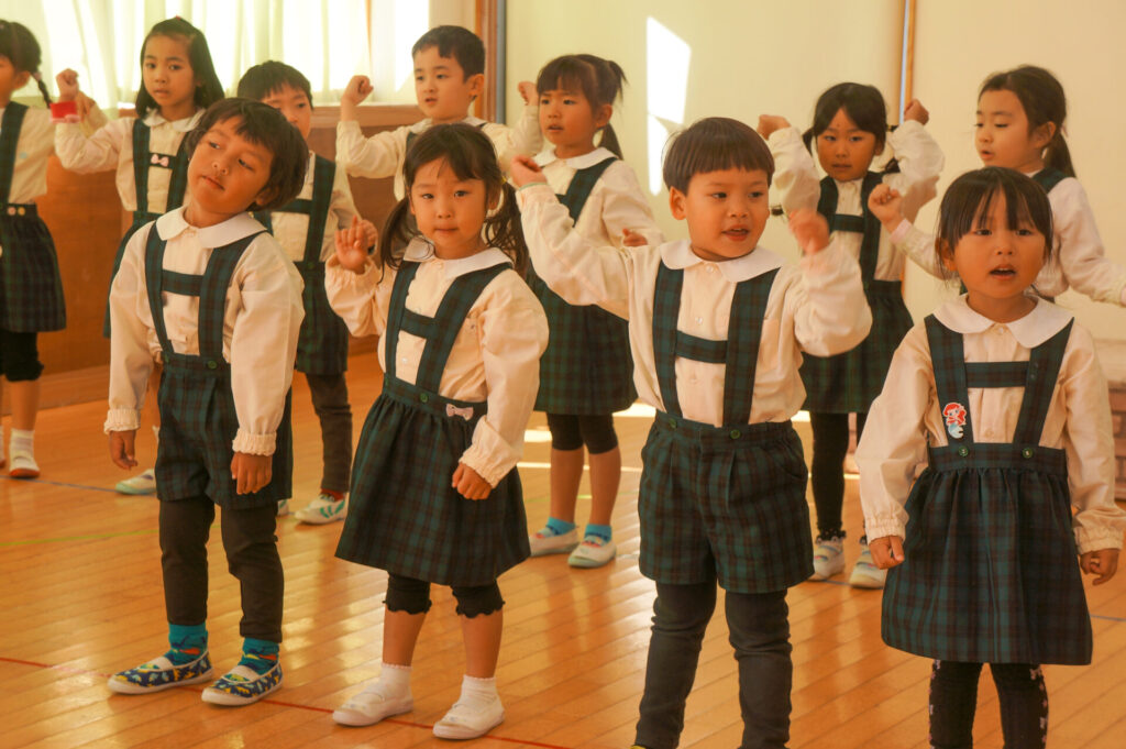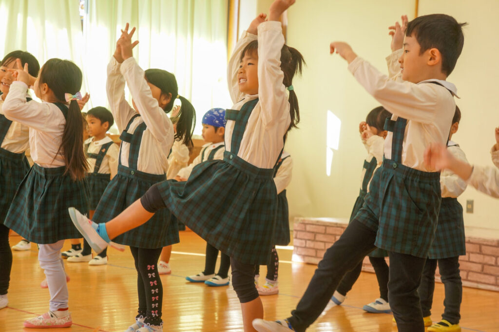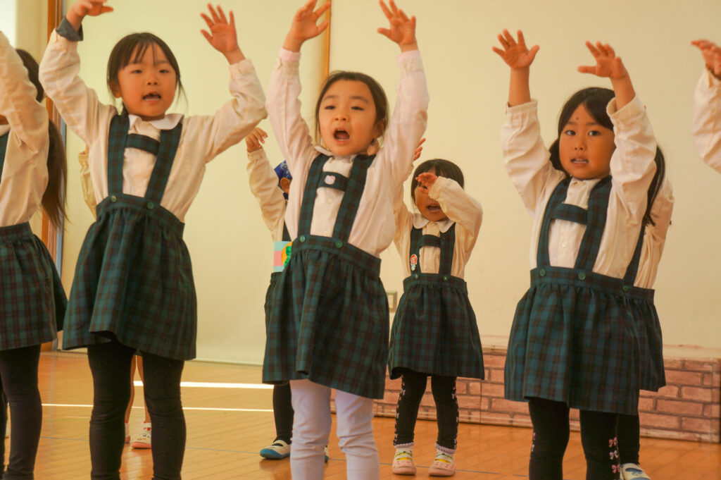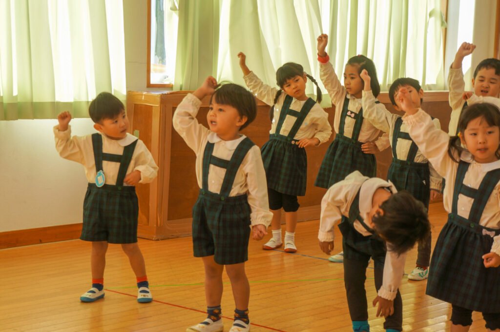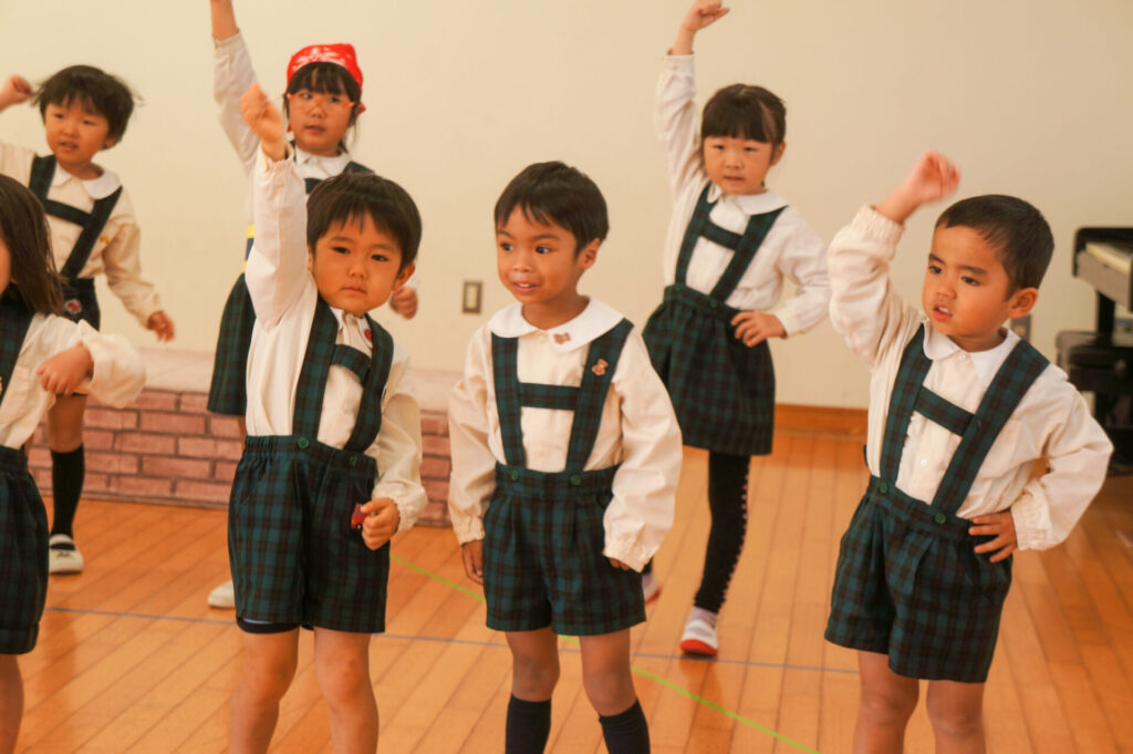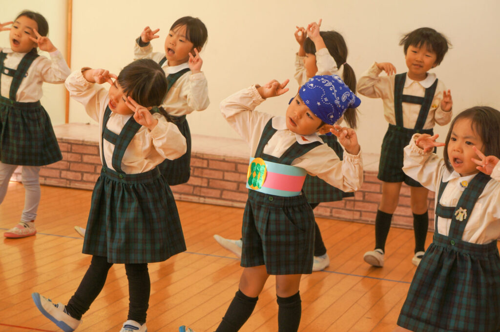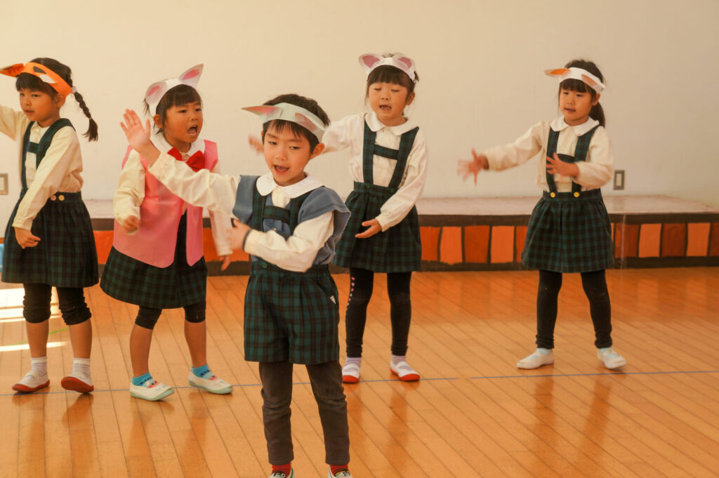 今日は、お互いの舞踊劇を見せ合い、音楽発表会ごっこをして楽しみました。当日を意識して少しずつ練習し、音楽発表会のイメージを膨らませていきたいと思っています。おうちでも「なんの役になったの?」「どんなお話の舞踊劇やるの?」など子どもたちと話をしてみてください。