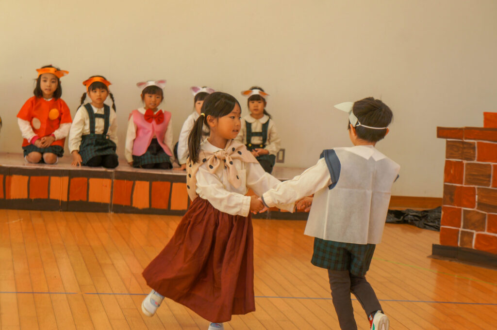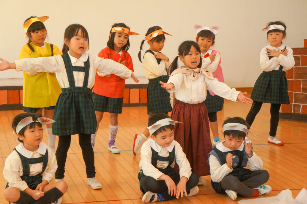 友だちと一緒に役になりきって表現したり、気持ちをひとつにして合奏やうたを歌ったり、4月からの成長をとても感じます。