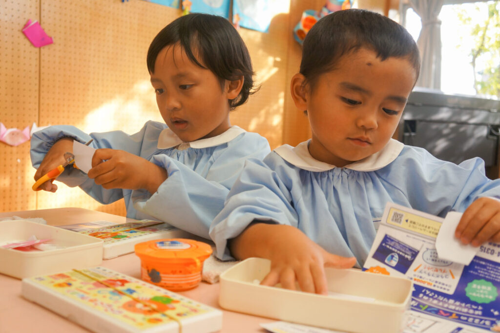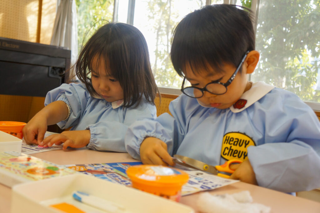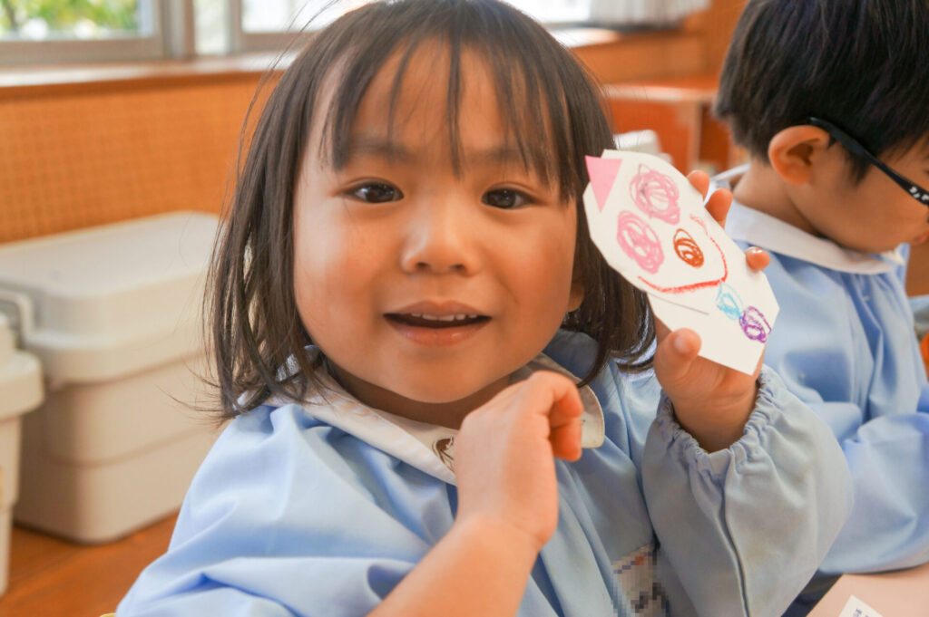 雪だるまの帽子を作ったり、顔やボタンをクレヨンで描いたりして、とてもかわいい雪だるまができました。はさみやのりの扱いも上手になってきて、子どもたちの成長を感じますね。