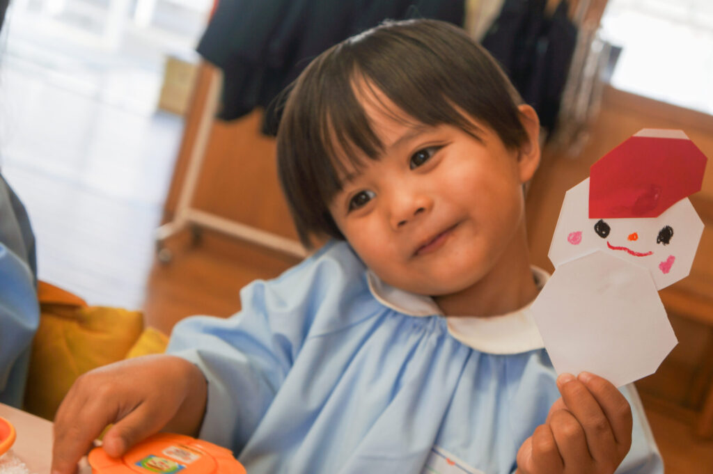 12月になりクリスマスムードが一気に高まりました。園内のクリスマスツリーを眺めては「きれい!」と触ったり、色々なところの装飾を見て「かわいいね!」と友だちと話したり、ゆり組の子どもたちもクリスマスに興味津々です。