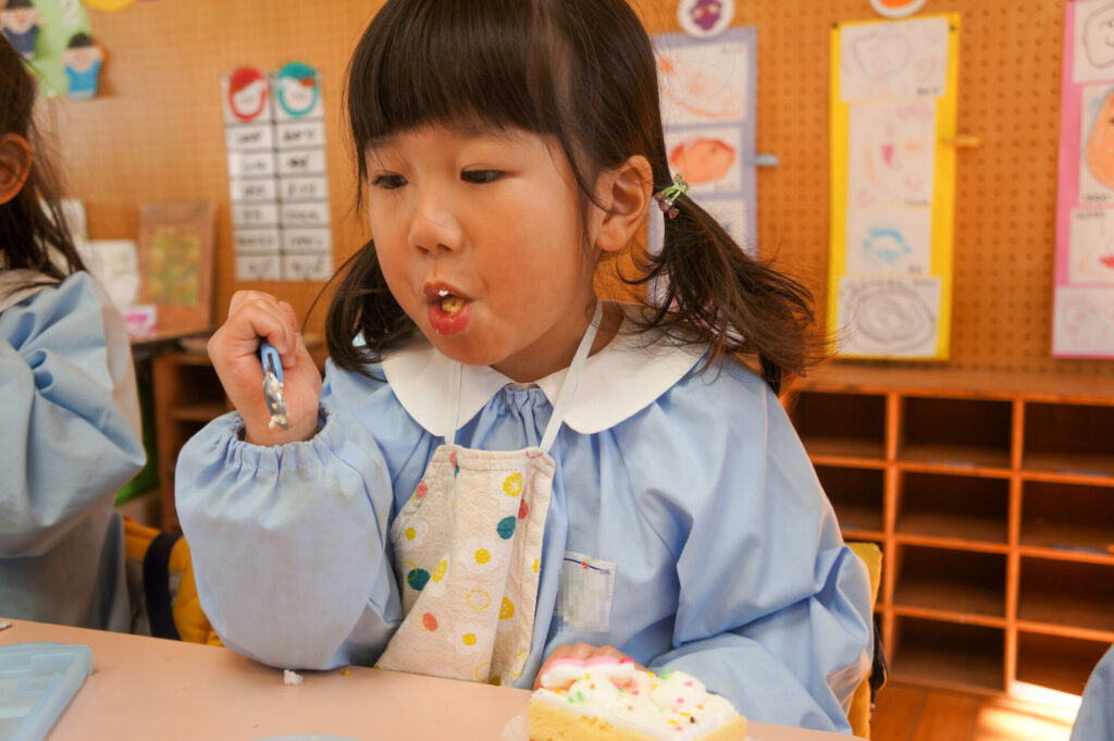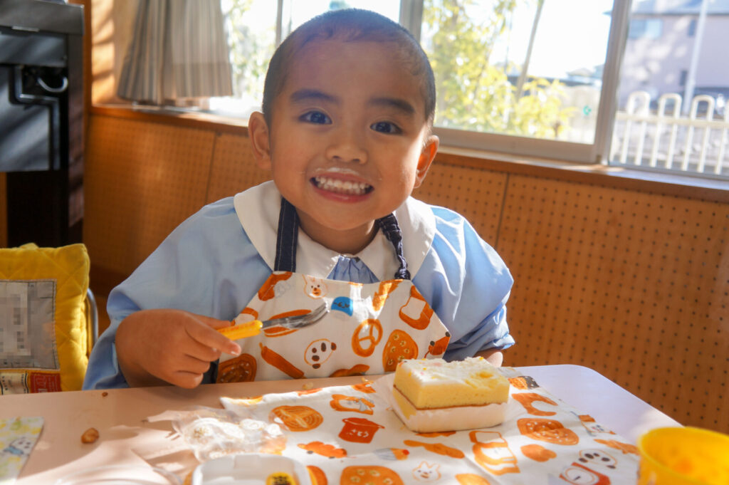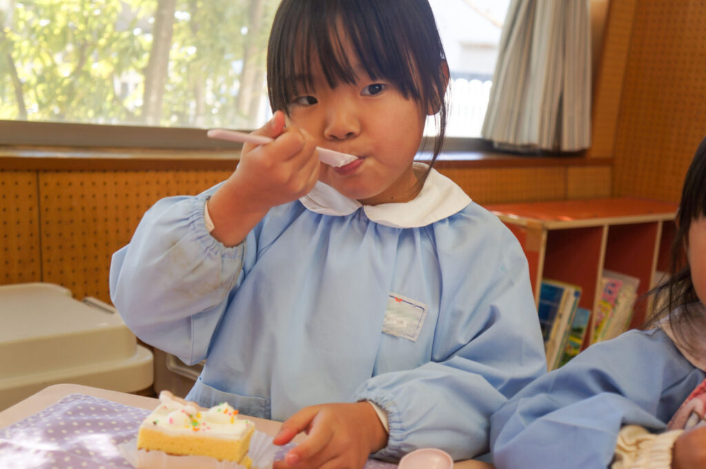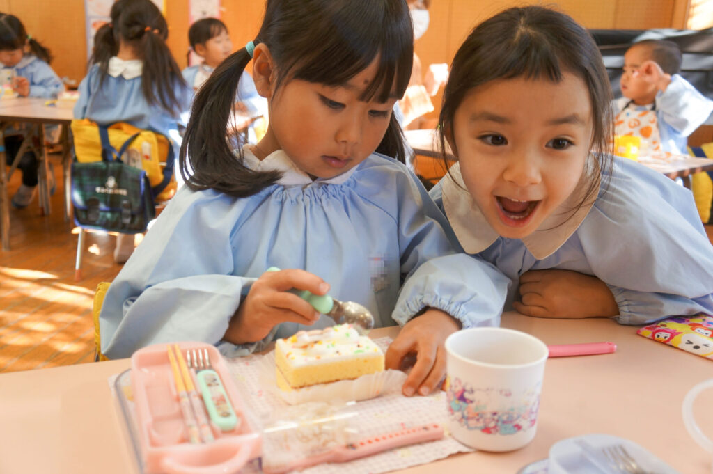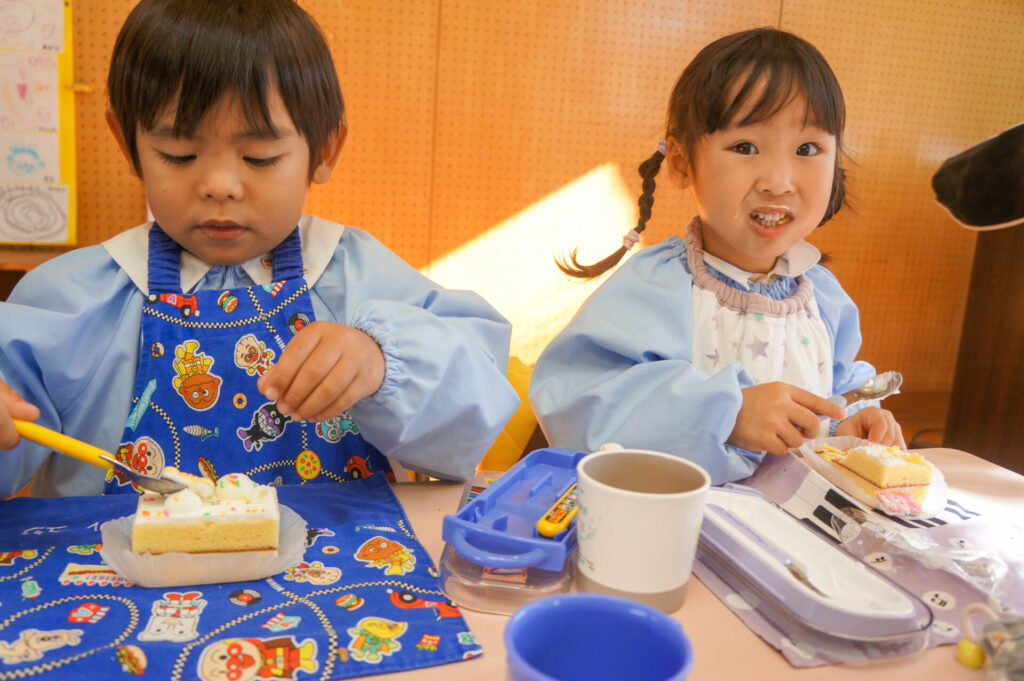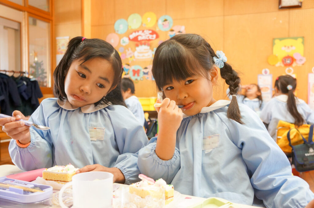 食後は楽しみにしていたクリスマスケーキです。給食をモリモリ食べ、ケーキもおいしくいただき、お腹いっぱいです。楽しいクリスマス会になりました。おうちでもお話聞いてみてくださいね。