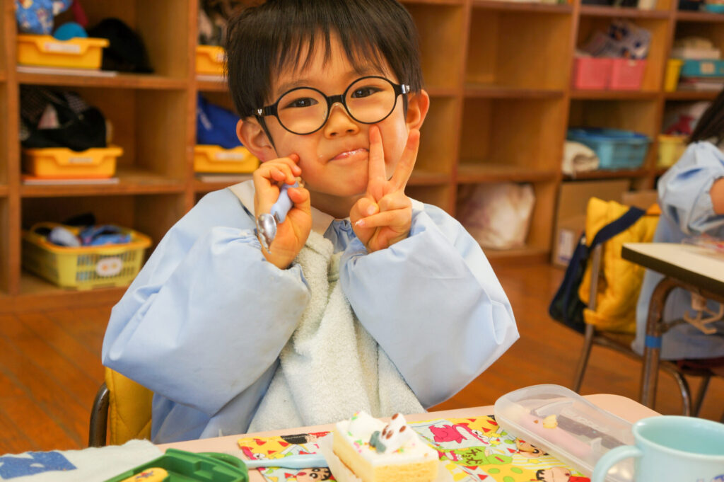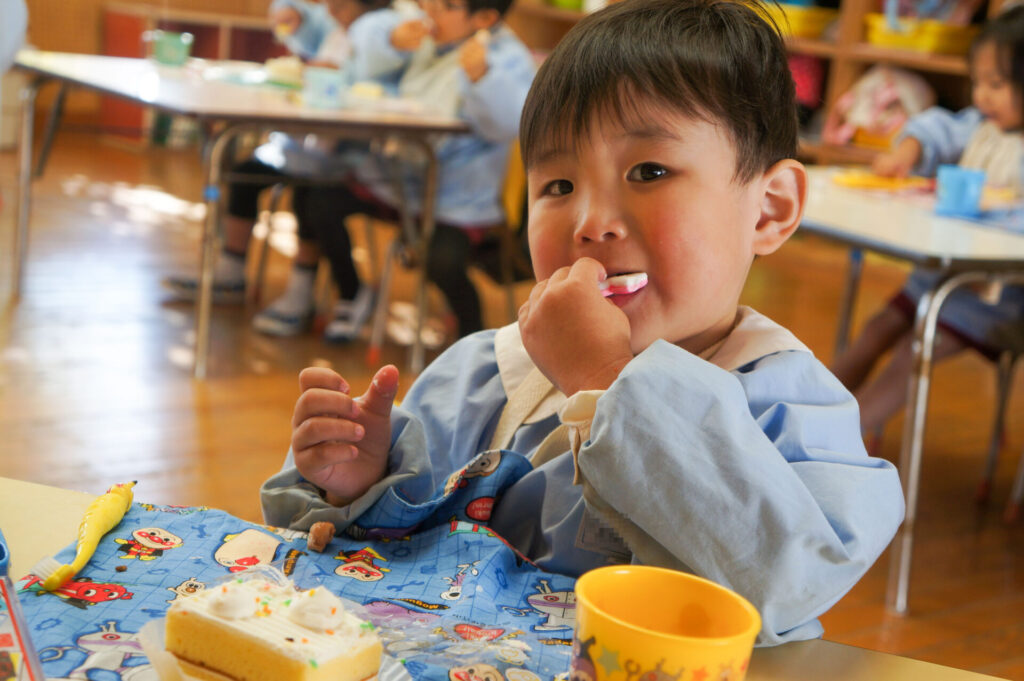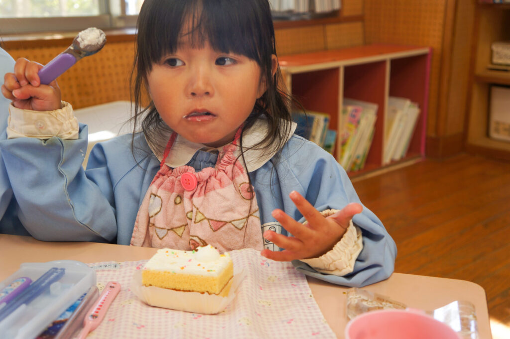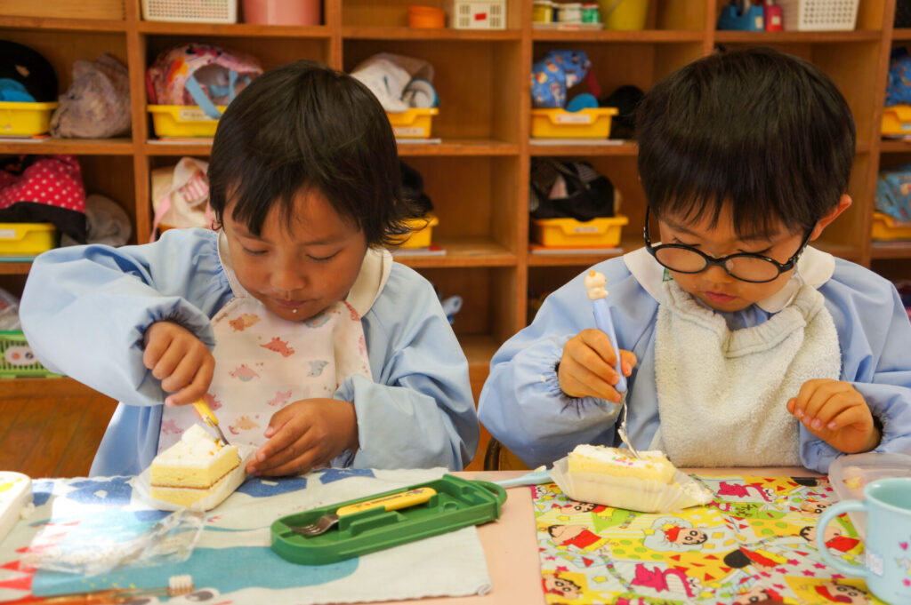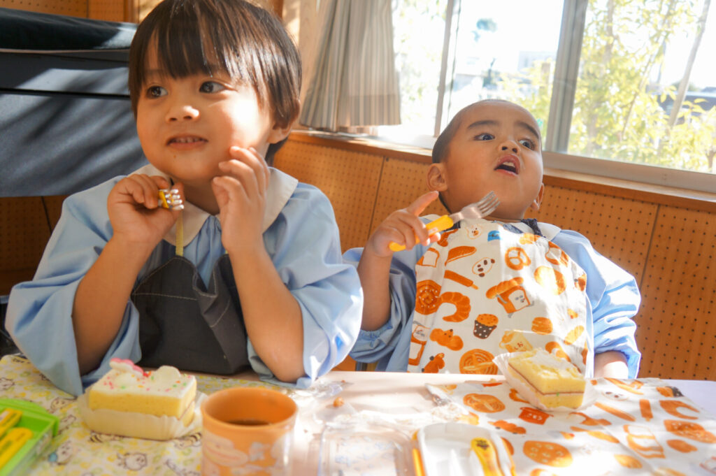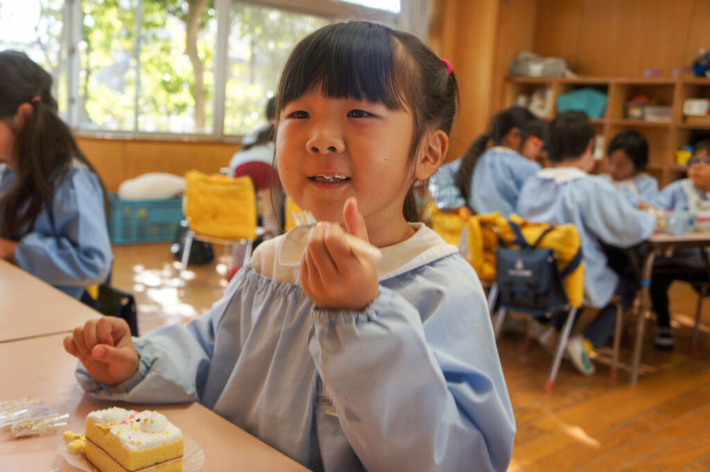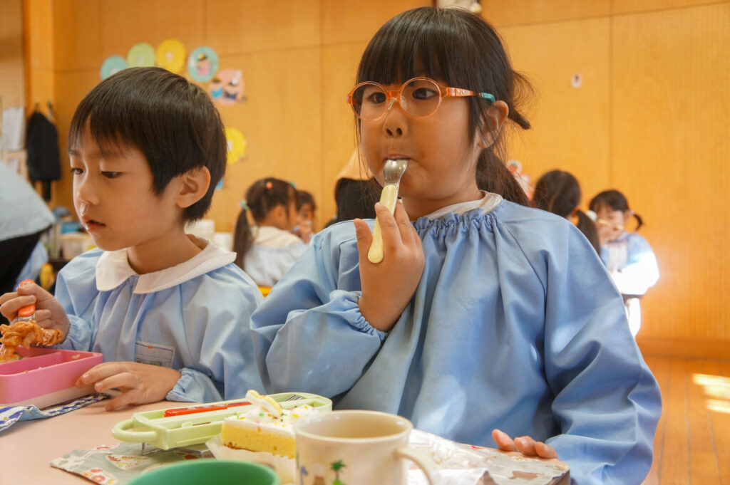 食後は楽しみにしていたクリスマスケーキです。給食をモリモリ食べ、ケーキもおいしくいただき、お腹いっぱいです。楽しいクリスマス会になりました。おうちでもお話聞いてみてくださいね。