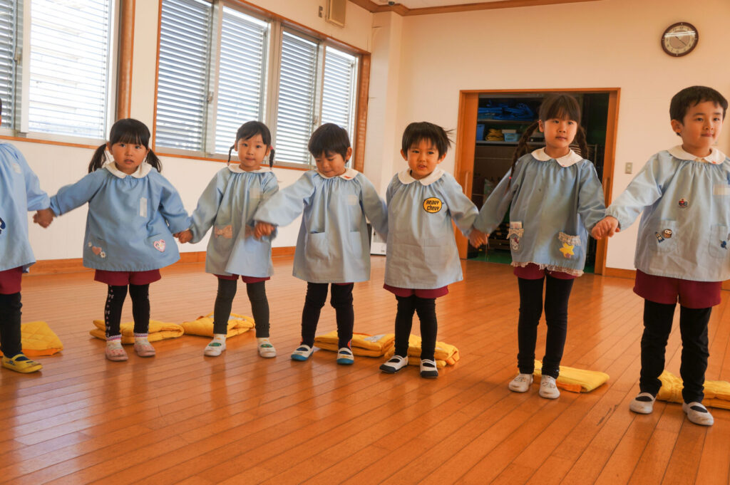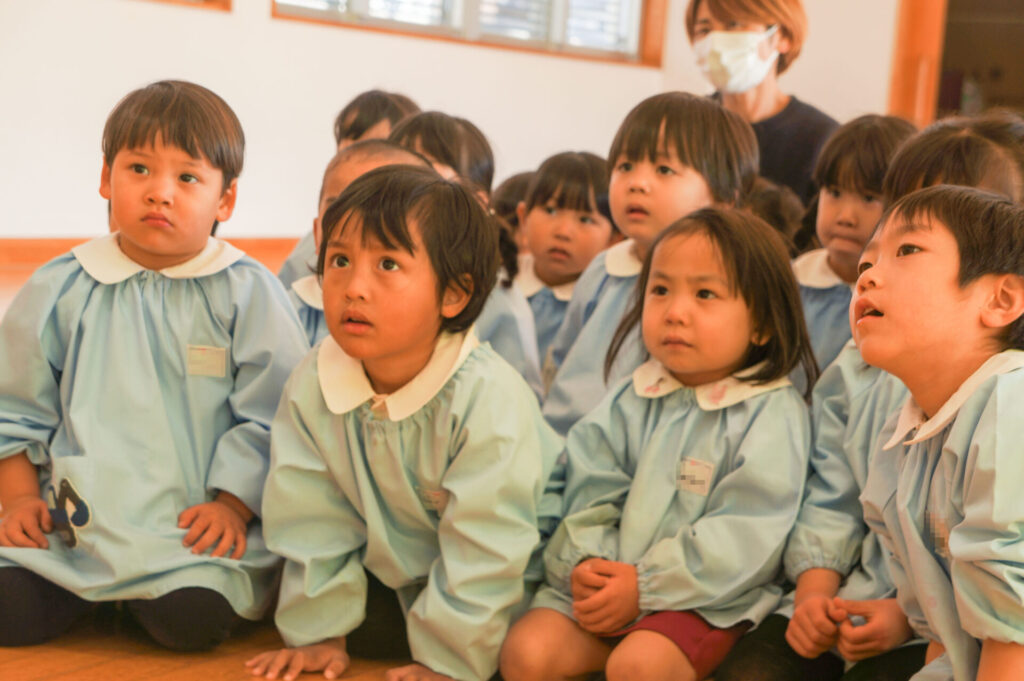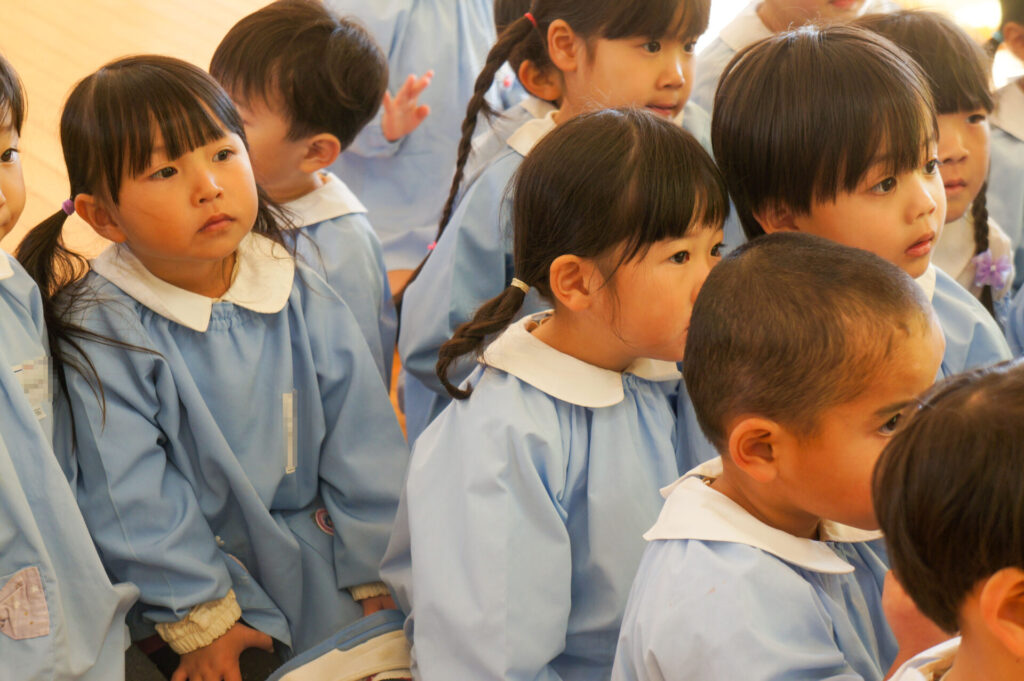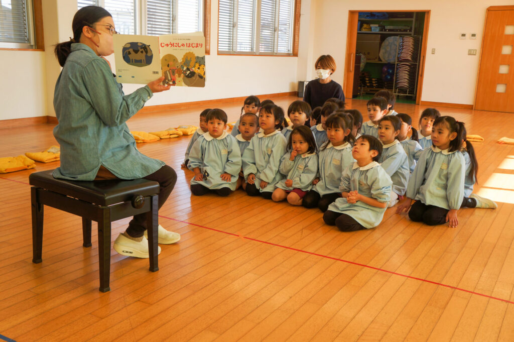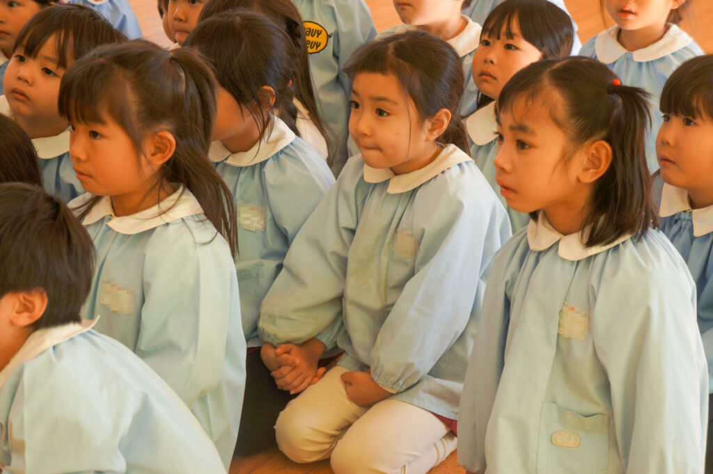 今日で楽しかった2学期も終わりです。すみれっ子がホールに集まり、楽しかった思い出を話したり、頑張りや成長を互いに褒め合いました。