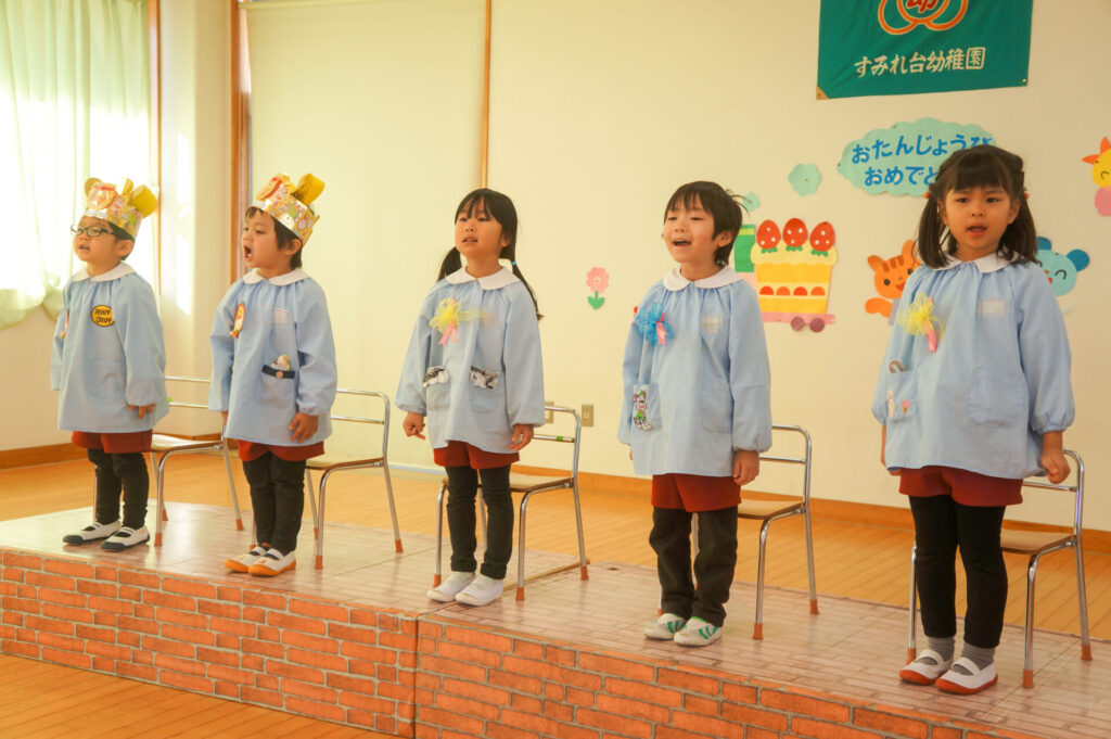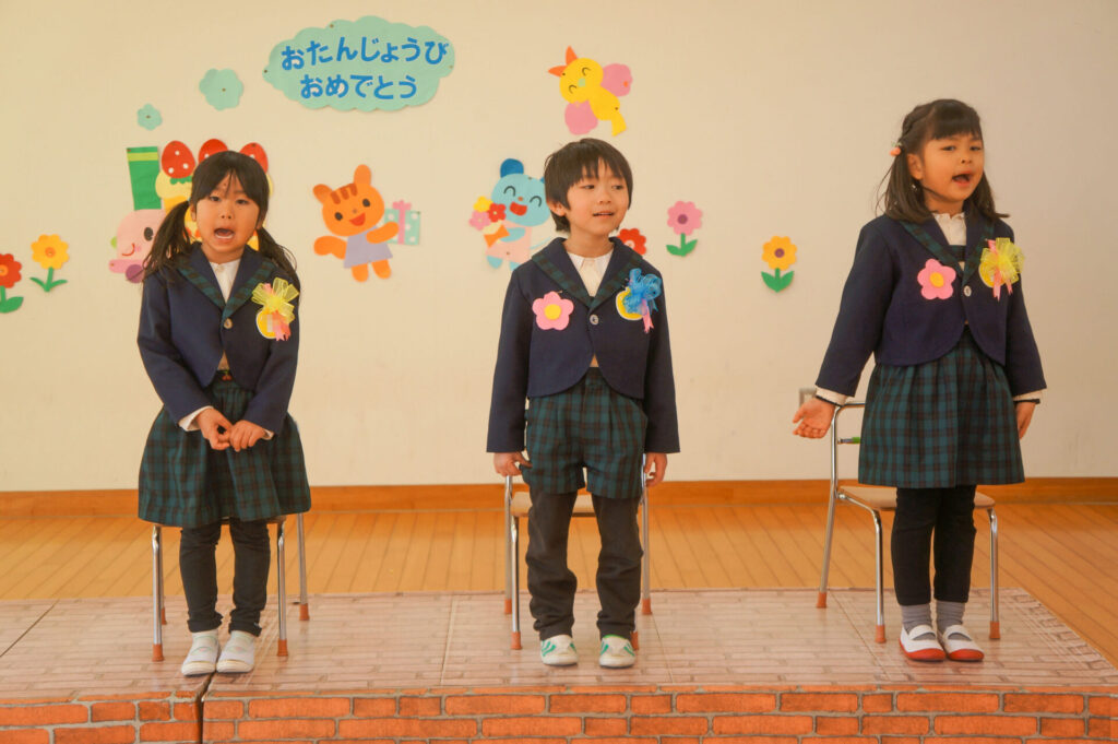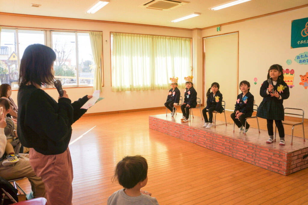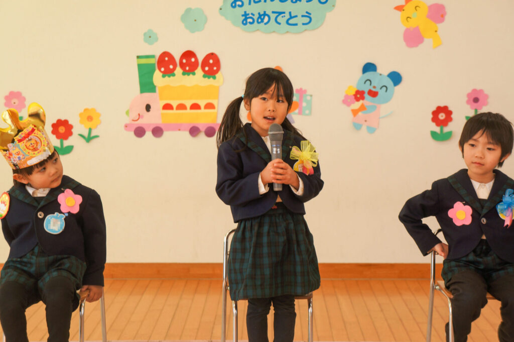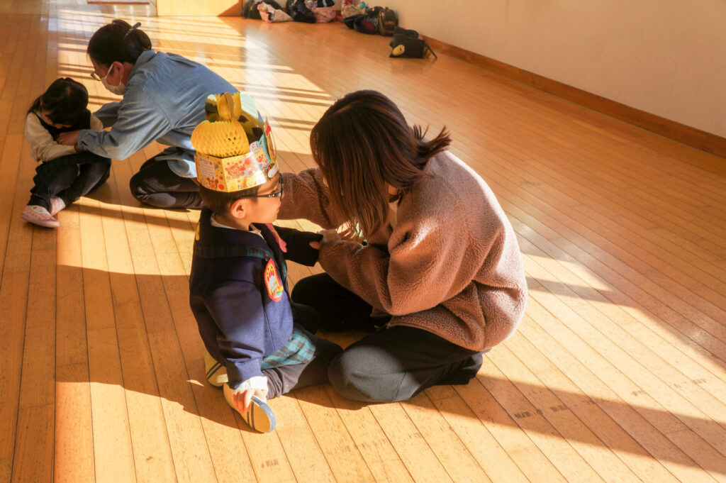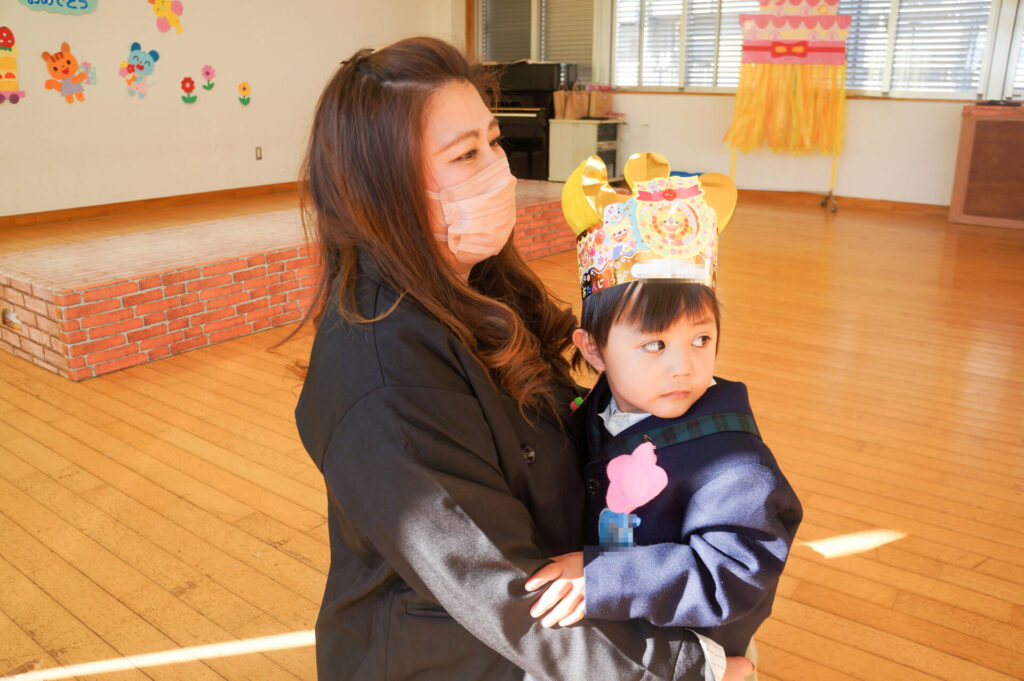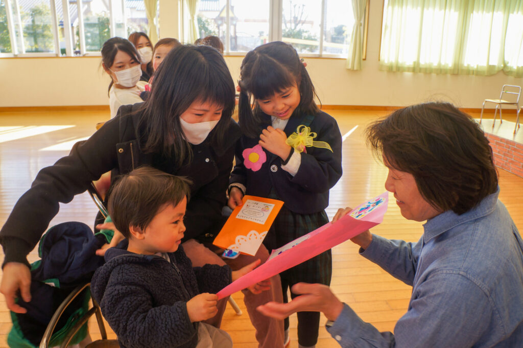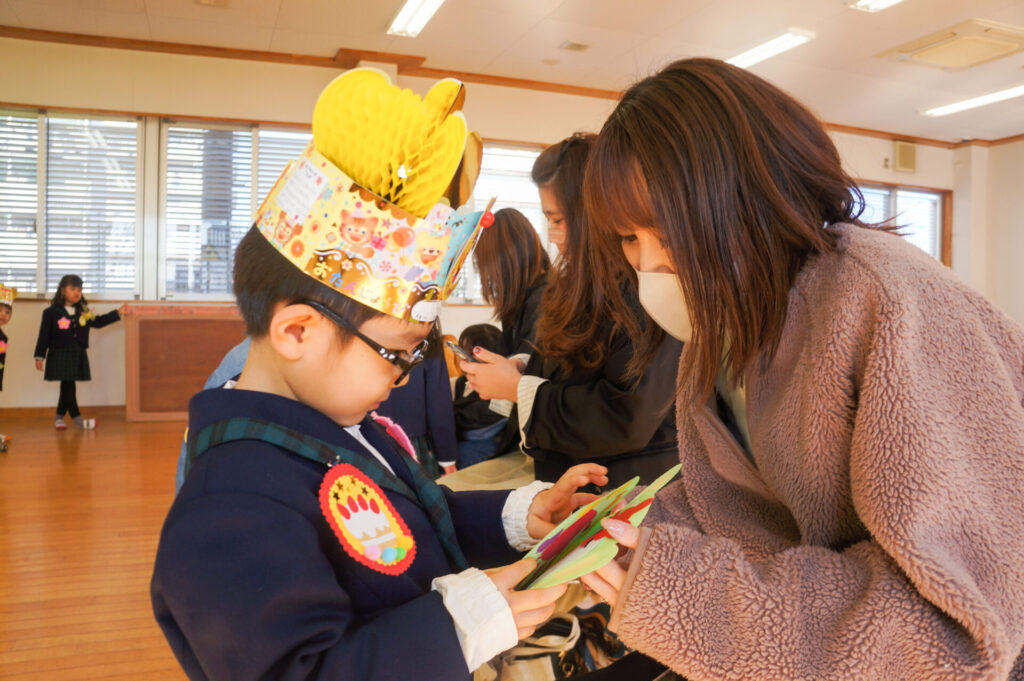 午後はおうちの人と一緒にお祝いです。大好きなおうちの人が来ると抱きついて喜ぶ姿が微笑ましかったです。おうちのみなさんからも温かなメッセージをいただき、とても嬉しそうでした。おうちのみなさんから、たくさんの愛情を注いでもらい大きくなっている子どもたち、今後の成長もとても楽しみです。