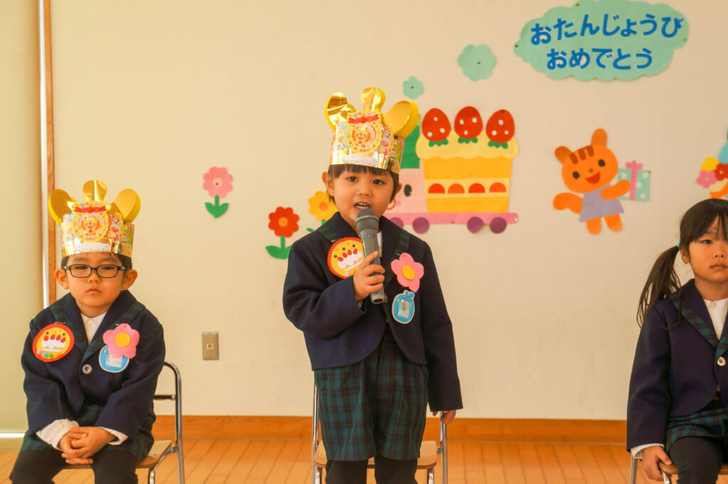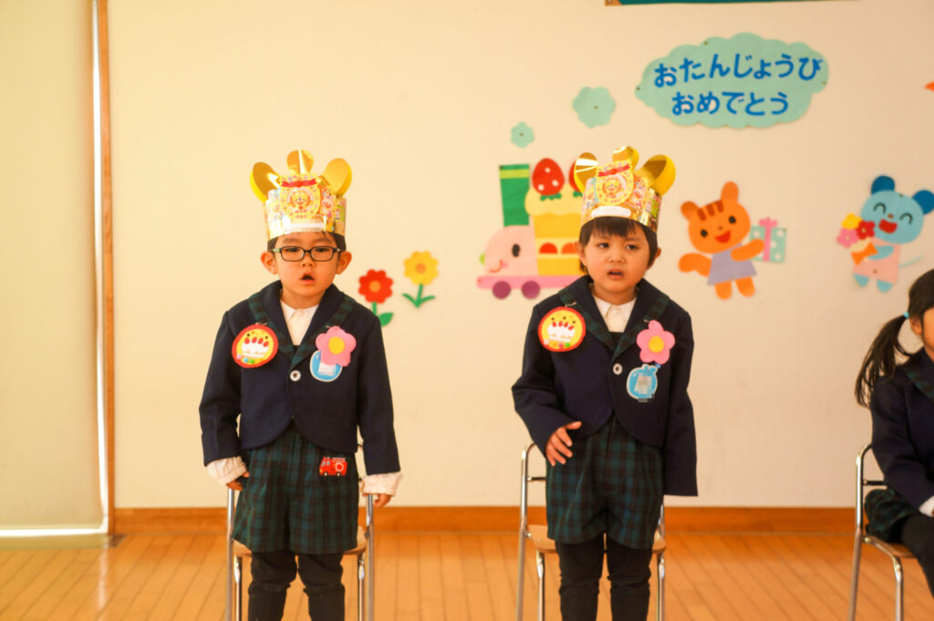 12月と1月生まれのお友だちお誕生日おめでとうございます!午前中はすみれっこにお祝いをしてもらい笑顔いっぱいでしたね。