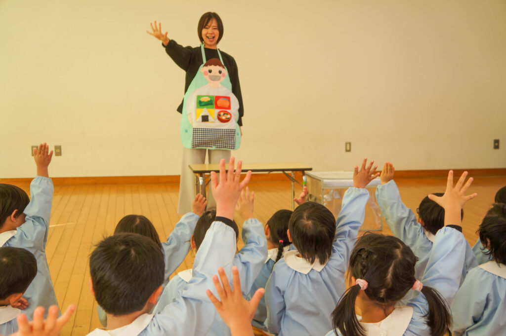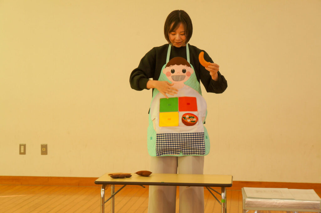 今日は、ヤクルトより講師の方をお招きし、健康に役立つエプロンシアターや紙芝居、クイズをして楽しみました。