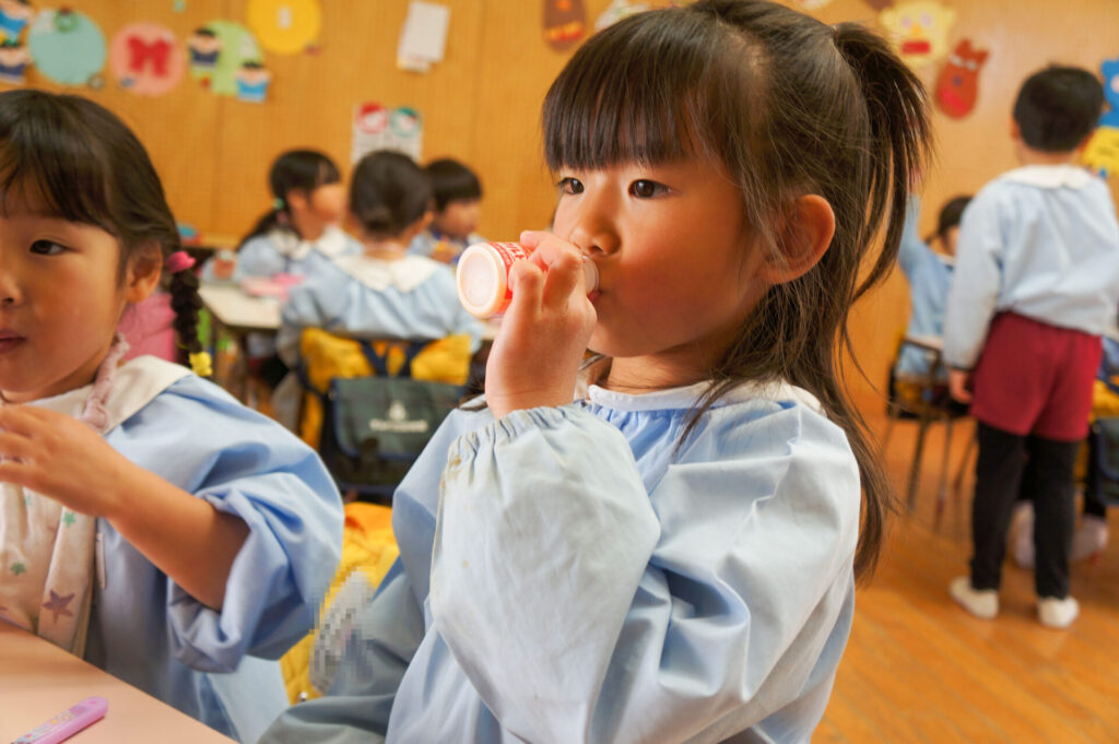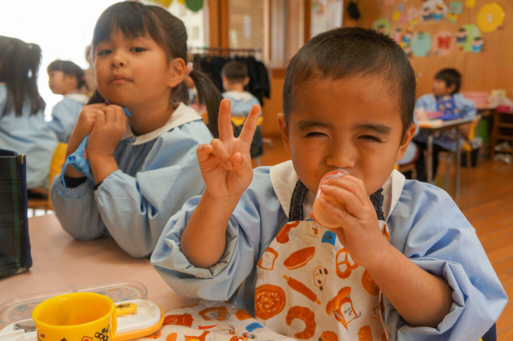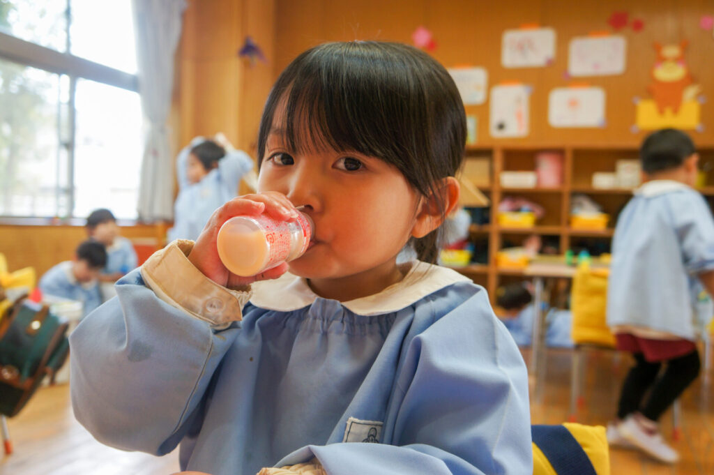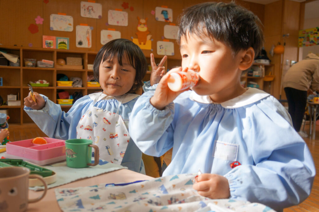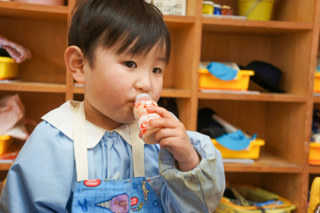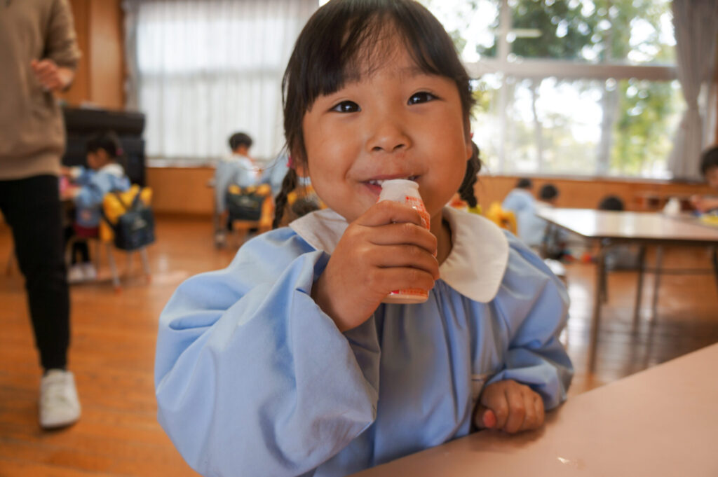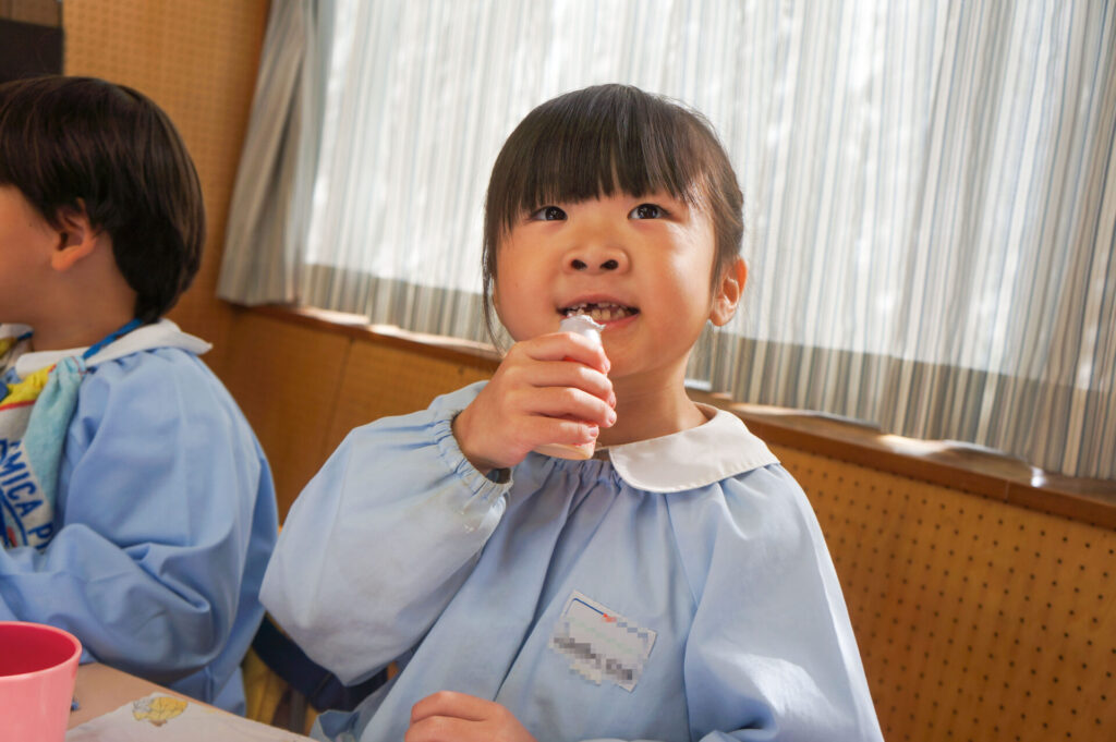 そして、今日の給食!!なんと、ほとんどの子が完食です!苦手な野菜も頑張って「お野菜モグモグ」達成しました。本当にえらかったです!そして、今日は特別にいただいた「ヤクルト」をみんなで飲みました。「美味しいね」と言って喜んで飲んでいて、笑顔いっぱいの子どもたちでした。