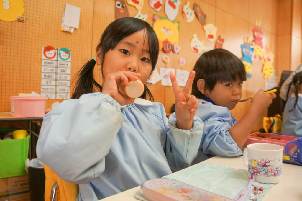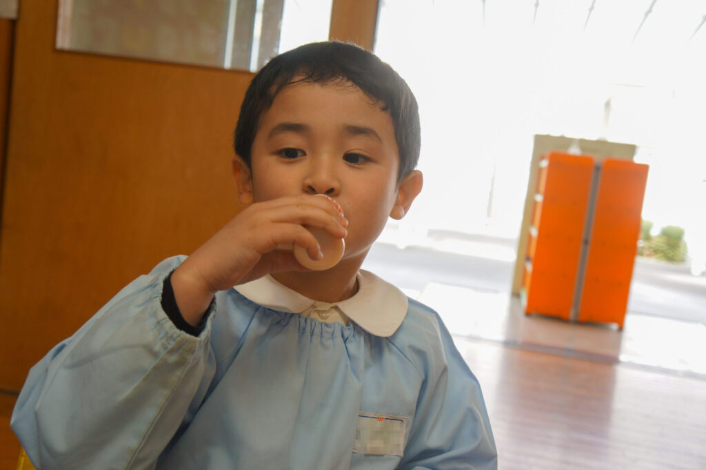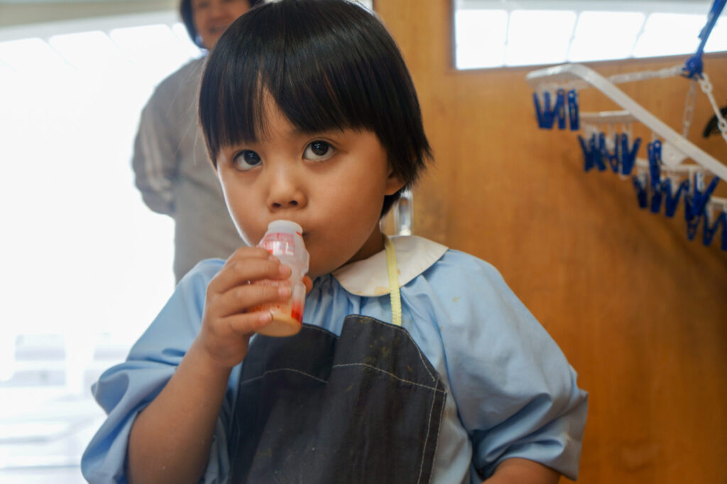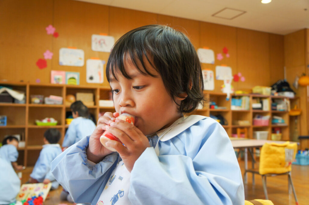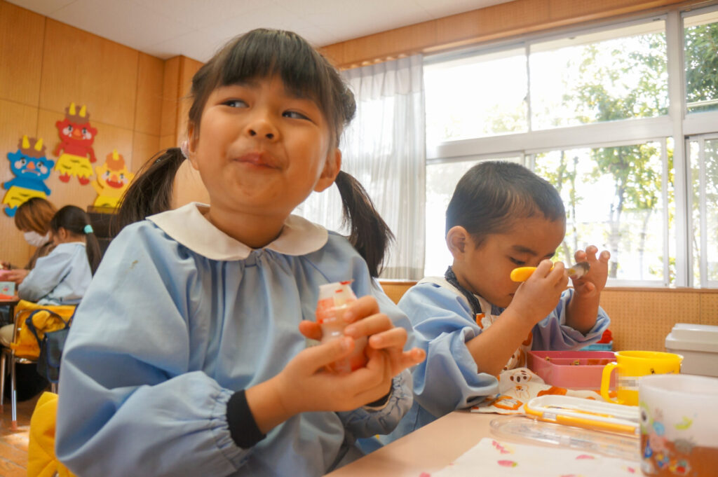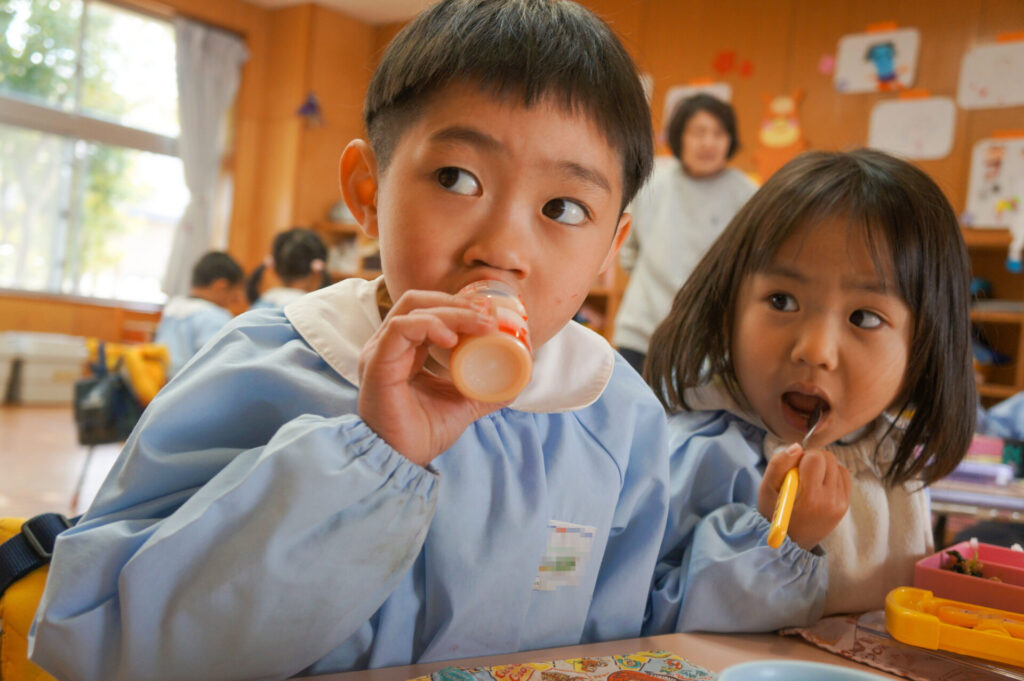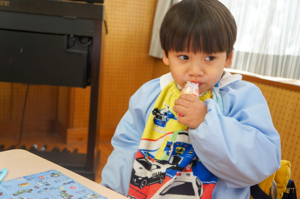そして、今日の給食!!なんと、ほとんどの子が完食です!苦手な野菜も頑張って「お野菜モグモグ」達成しました。本当にえらかったです!そして、今日は特別にいただいた「ヤクルト」をみんなで飲みました。「美味しいね」と言って喜んで飲んでいて、笑顔いっぱいの子どもたちでした。