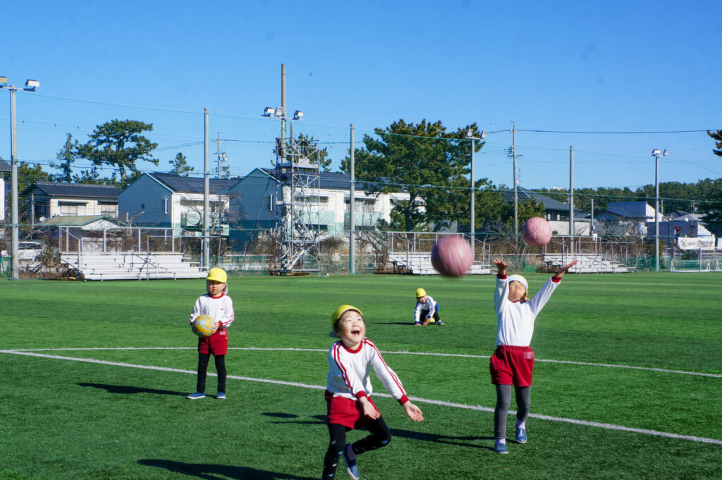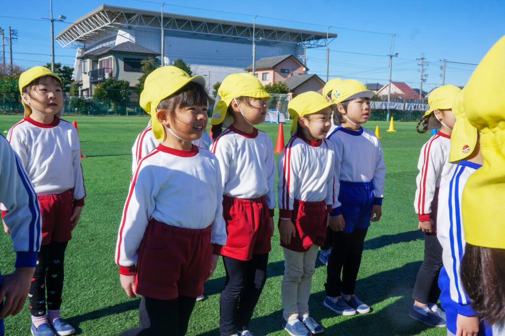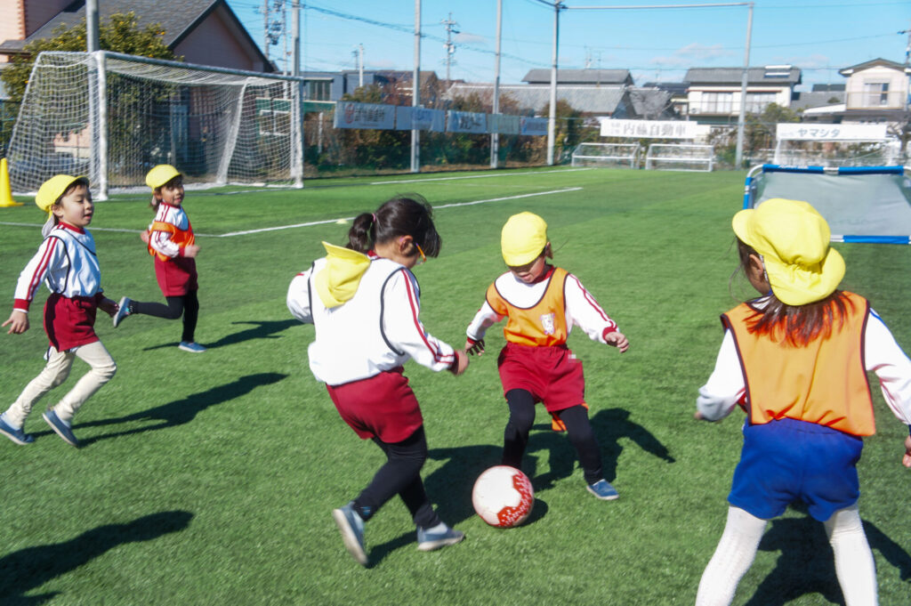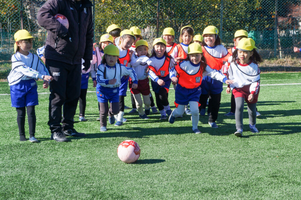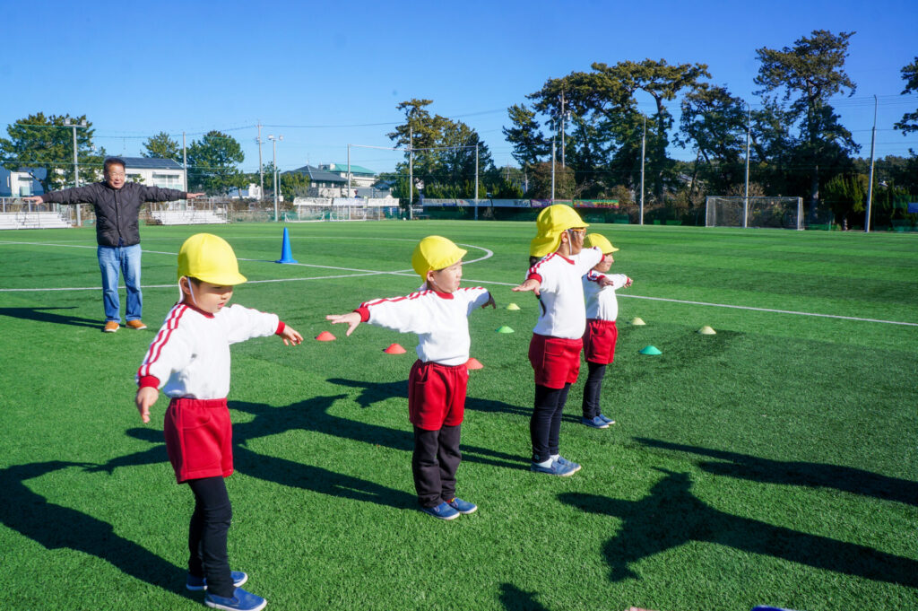 肌寒い一日でしたが、太陽が降り注ぎ、すばらしい環境の下、サッカー教室へ参加することができて、子ども達の笑顔が何よりも輝いていました。来週は園内で「サッカー大会」を予定しています。優勝チームはどこになるでしょうか…?連休はゆっくり休んで、来週も幼稚園で元気いっぱい遊びましょうね。
