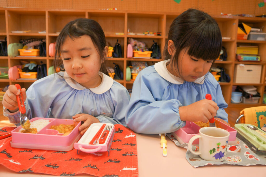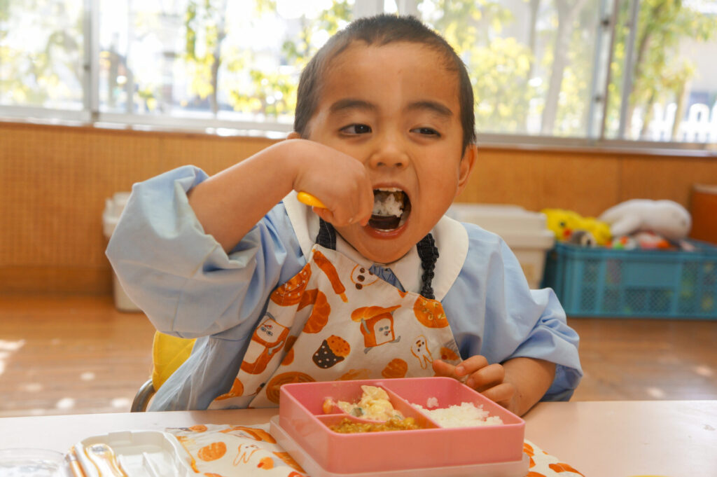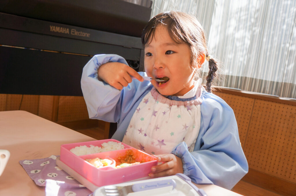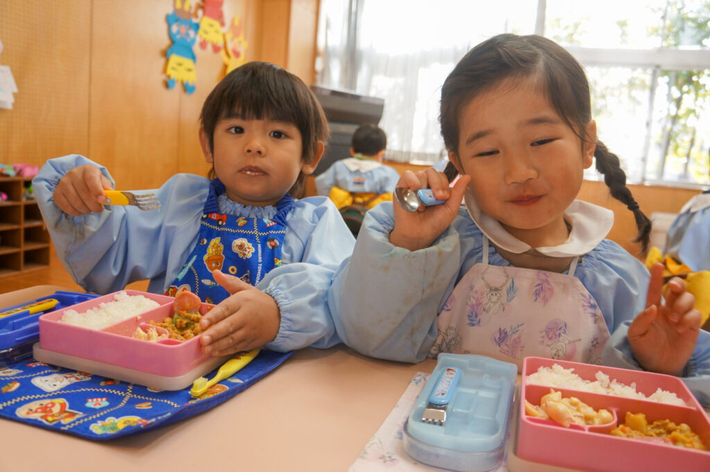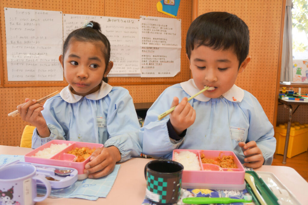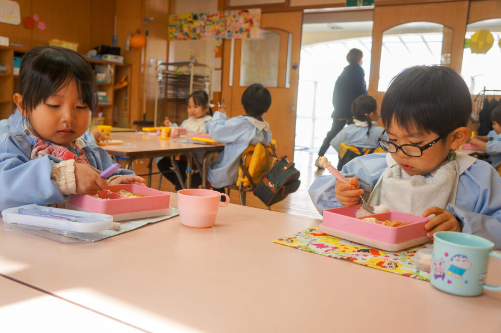 園での様子 給食 sumiredaihp 2026年1月26日 寒い日も続いていますが、すみれっこは元気いっぱいです!今日も、マラソンをして体を温めました。今週の水曜日には「マラソン大会」もあります。走れる距離も増え自信もついています。みんなでマラソン大会も頑張りましょうね!! 身体をいっぱい動かし、たくさん遊んでいる子どもたちは給食の時間も楽しみにしています!「お腹すいた!!」と言って食べる姿は、とても微笑ましく感じます。お箸を持っていない手は給食箱に添える、肘をついて食べないなど食事中のマナーも意識できるように声をかけています。 園で食事をするのは、1日3食のうち1回です。その1回だけでは、食事のマナーや苦手な食材の克服は身につきません。家族で食べる食事は、子どもたちにはとても大切な時間です。食事中にアドバイスをしたり、楽しく食事ができるように引き続きよろしくお願いいたします。