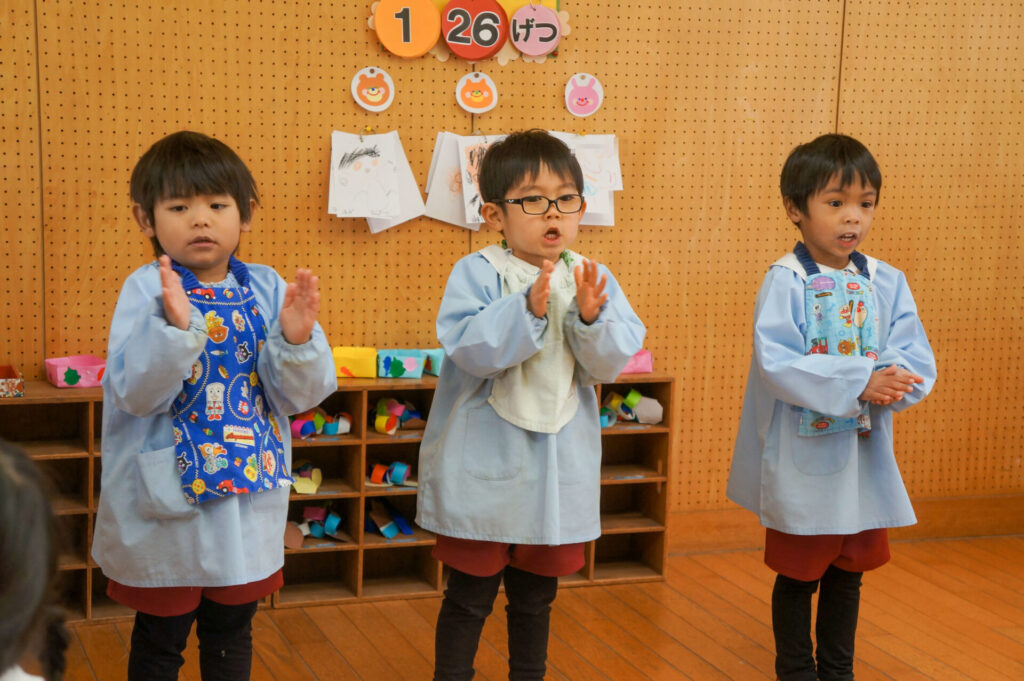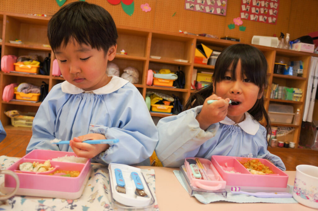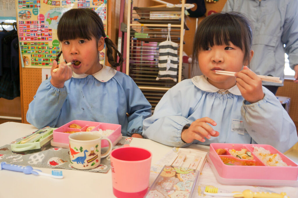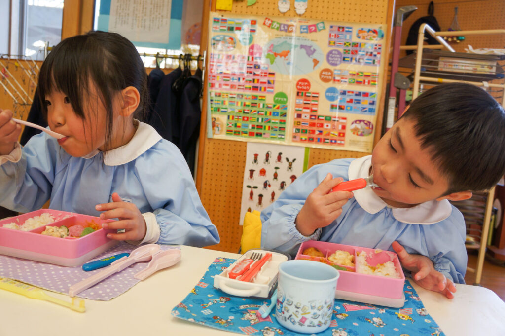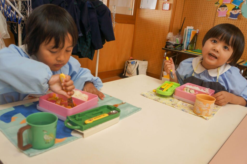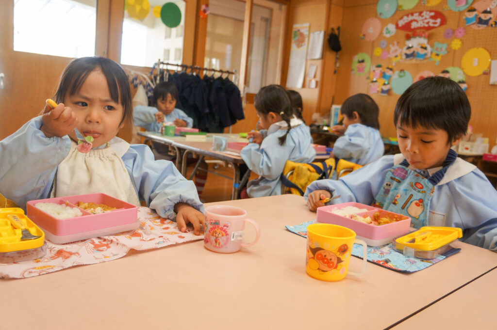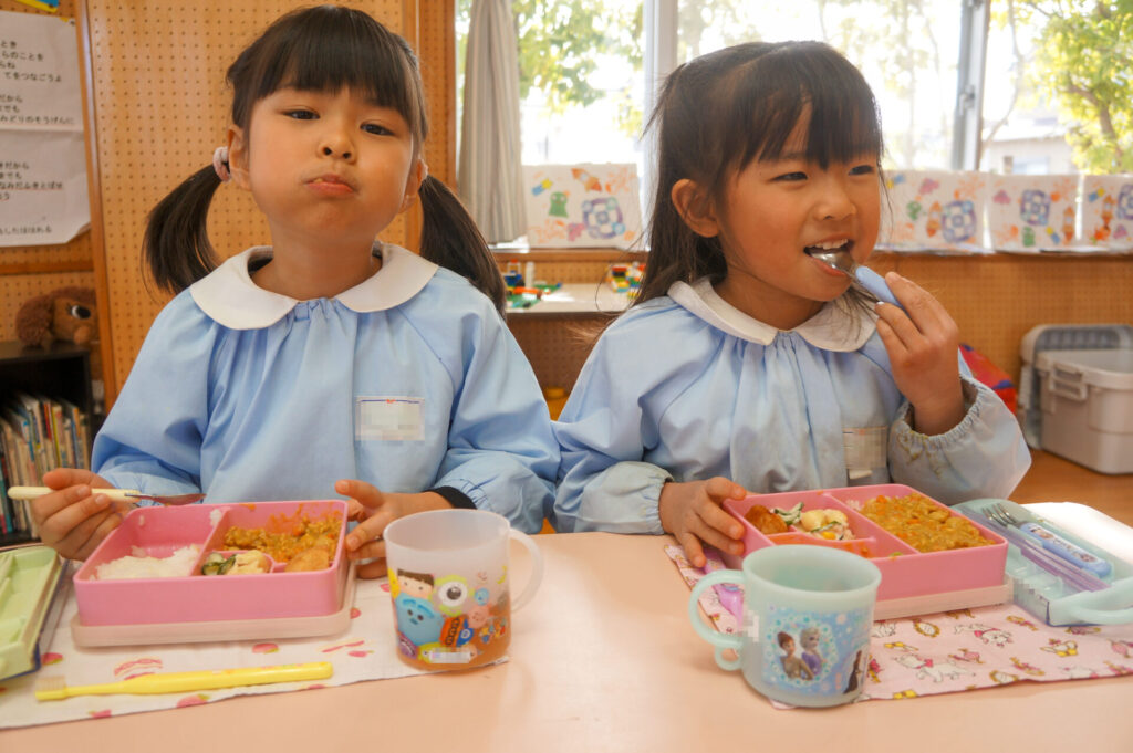 園での様子 給食 sumiredaihp 2026年1月26日 寒い日も続いていますが、すみれっこは元気いっぱいです!今日も、マラソンをして体を温めました。今週の水曜日には「マラソン大会」もあります。走れる距離も増え自信もついています。みんなでマラソン大会も頑張りましょうね!! 身体をいっぱい動かし、たくさん遊んでいる子どもたちは給食の時間も楽しみにしています!「お腹すいた!!」と言って食べる姿は、とても微笑ましく感じます。お箸を持っていない手は給食箱に添える、肘をついて食べないなど食事中のマナーも意識できるように声をかけています。 園で食事をするのは、1日3食のうち1回です。その1回だけでは、食事のマナーや苦手な食材の克服は身につきません。家族で食べる食事は、子どもたちにはとても大切な時間です。食事中にアドバイスをしたり、楽しく食事ができるように引き続きよろしくお願いいたします。