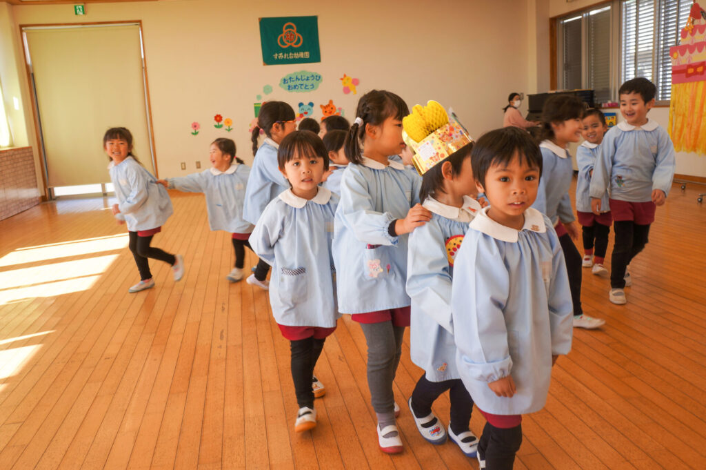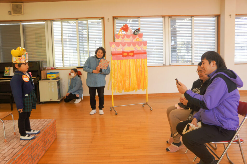 園での様子 誕生会(2月)・すみれランチ sumiredaihp 2026年2月4日 2月生まれのお友だちお誕生日おめでとうございます!「誕生日だよ!誕生日だよ!」と嬉しくてたまらない一日、4月からずっとこの日を待っていたのが伝わりました。 午前中はすみれっこにお祝いをしてもらい緊張と嬉しさがあふれる表情でした。自己紹介や歌の発表もとても立派にできました。たくさんの拍手にとても嬉しそうにしていました。 そして、今日の「お楽しみ」はジャンケン列車と椅子取りゲームです。ジャンケンを練習したり、椅子取りゲームにも挑戦している年少ゆり組の子どもたちは大興奮!年長つき組の子どもたちに教えてもらいながら楽しく遊びました。そして、まだまだお楽しみはあります! 今日は、すみれっ子が大好きな「すみれランチ」も開催しました。お誕生児を中心に、みんなで温かな雰囲気の中お弁当を食べました。みんなで食べると更に美味しさもアップです! 午後はおうちの人と一緒にお祝いです。大好きなおうちの人が来ると抱きついて喜ぶ姿が微笑ましかったです。おうちのみなさんからも温かなメッセージをいただき、とても嬉しそうでした。 おうちのみなさんから、たくさんの愛情を注いでもらい大きくなっている子どもたち、今後の成長もとても楽しみです。2月生まれのお友だち、お誕生日おめでとうございます。