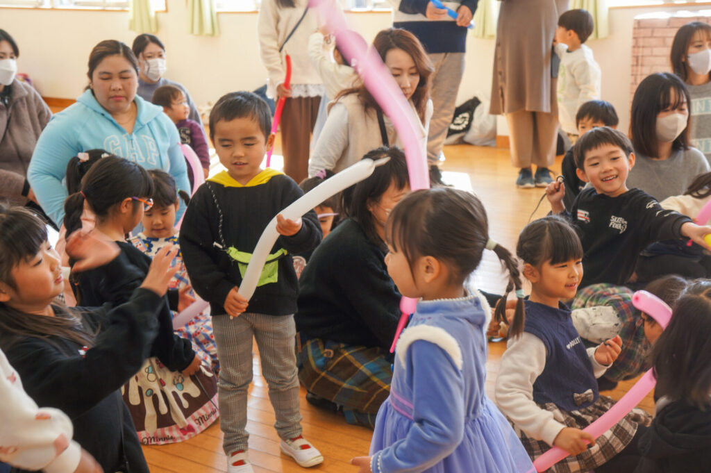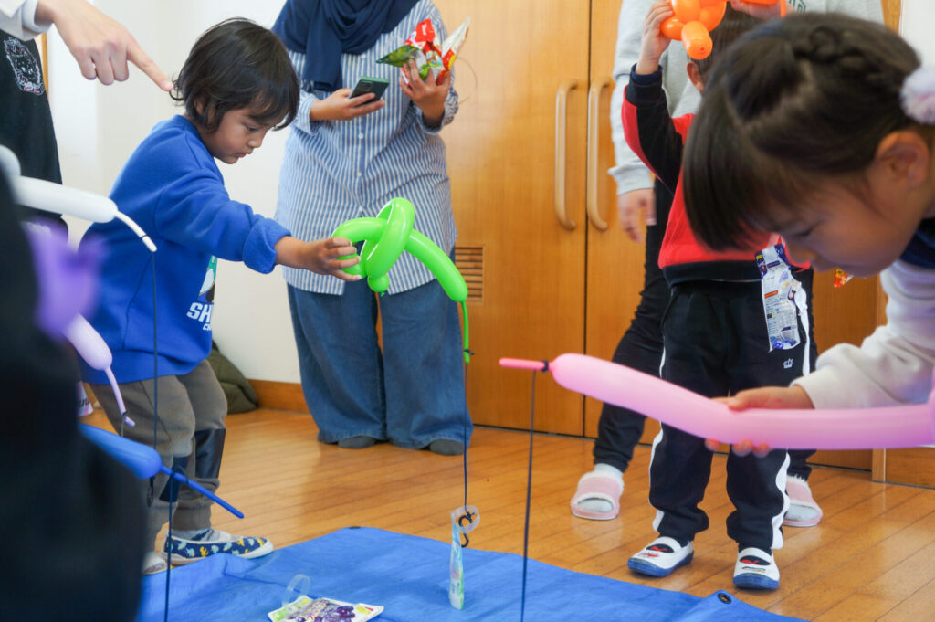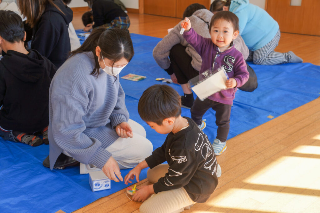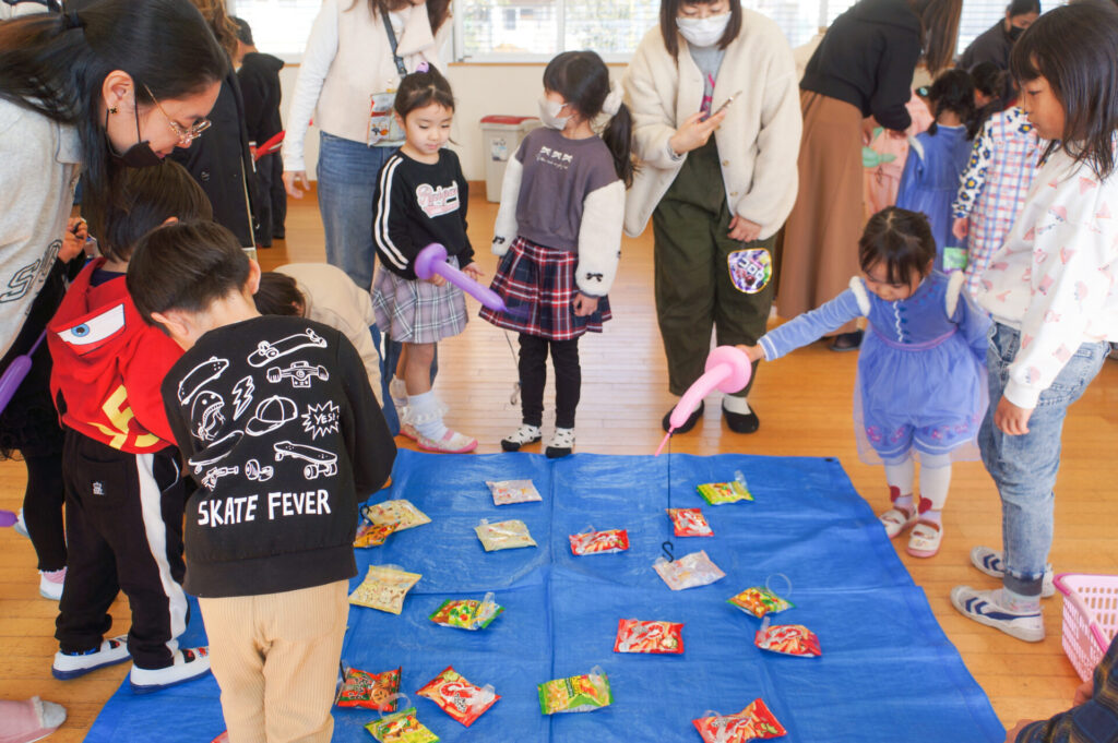 園での様子 父母の会イベント sumiredaihp 2026年2月14日 今日は、父母の会イベントで「色の変わる駒作り」「バルーンアートでお菓子つり」をして親子でたくさん触れ合い遊びました。 色の変わる駒作りでは、くるくる回る駒に目を輝かせていたすみれっ子!色が変わる瞬間は「わー!!」と歓声があがり自然と拍手がうまれていました。駒に色を付けたり、おうちの人と一緒に駒をまわす練習をしたり親子でたっぷり関わることができましたね。 バルーンアートでお菓子釣りも、おうちの人と協力して上手にお菓子を釣ることができました。すみれっ子の笑顔がたくさん見ることができました。 日々の園生活もおうちのみなさんのご協力のおかげで楽しく過ごすことができています。今年度も残り20日!元気に幼稚園で遊びましょうね。今日はお越しいただきありがとうございました。みなさんのおかげで楽しいひと時を過ごすことができました。
