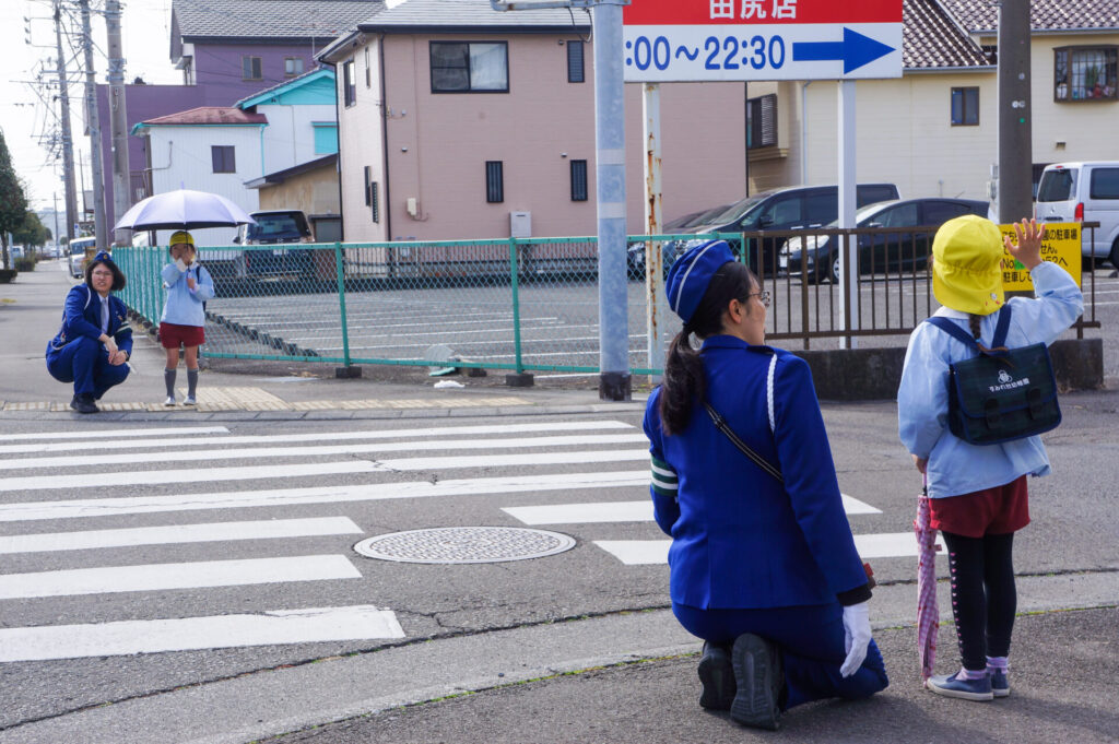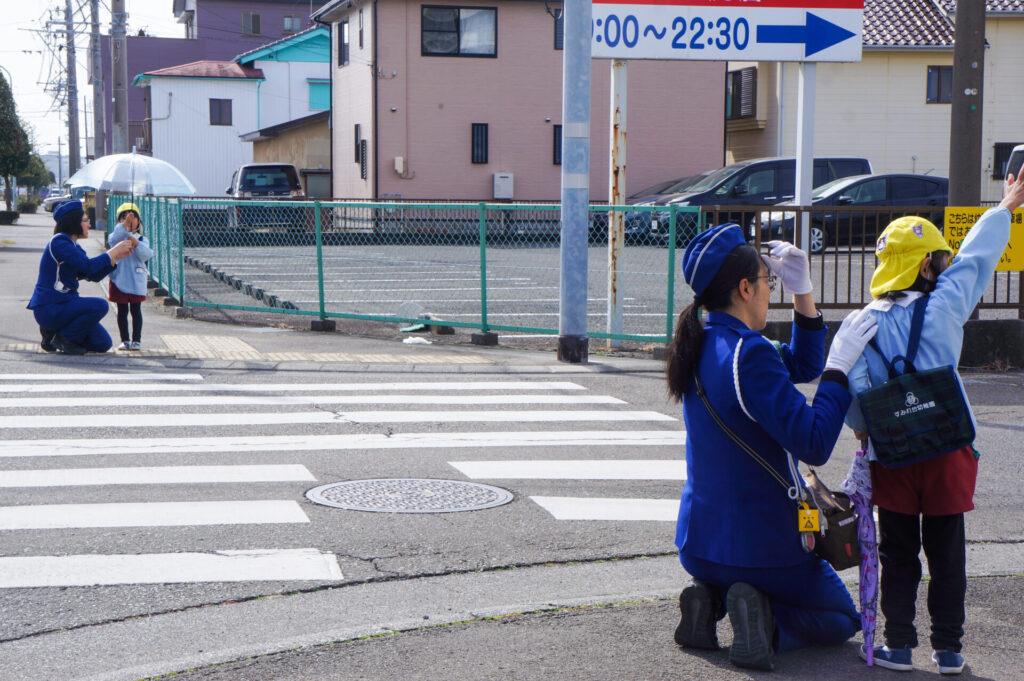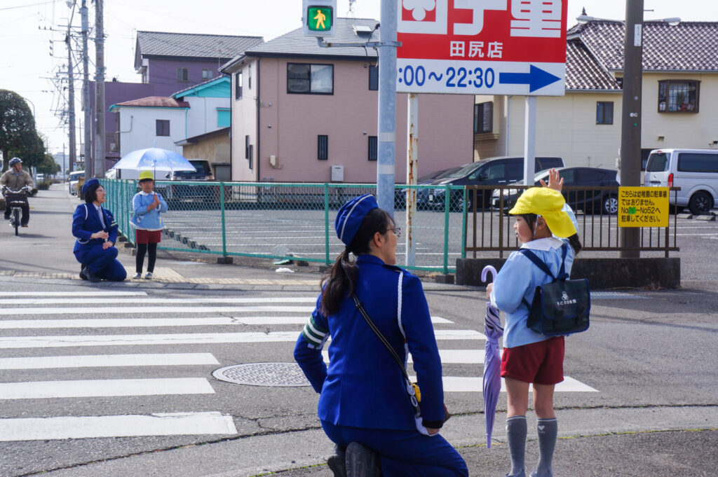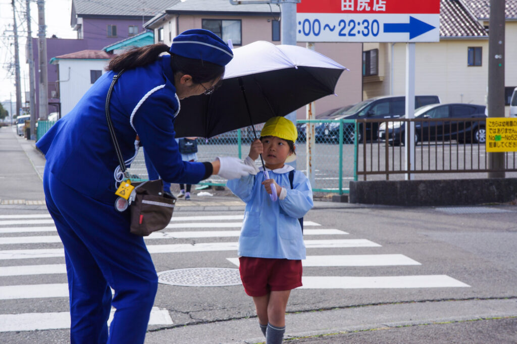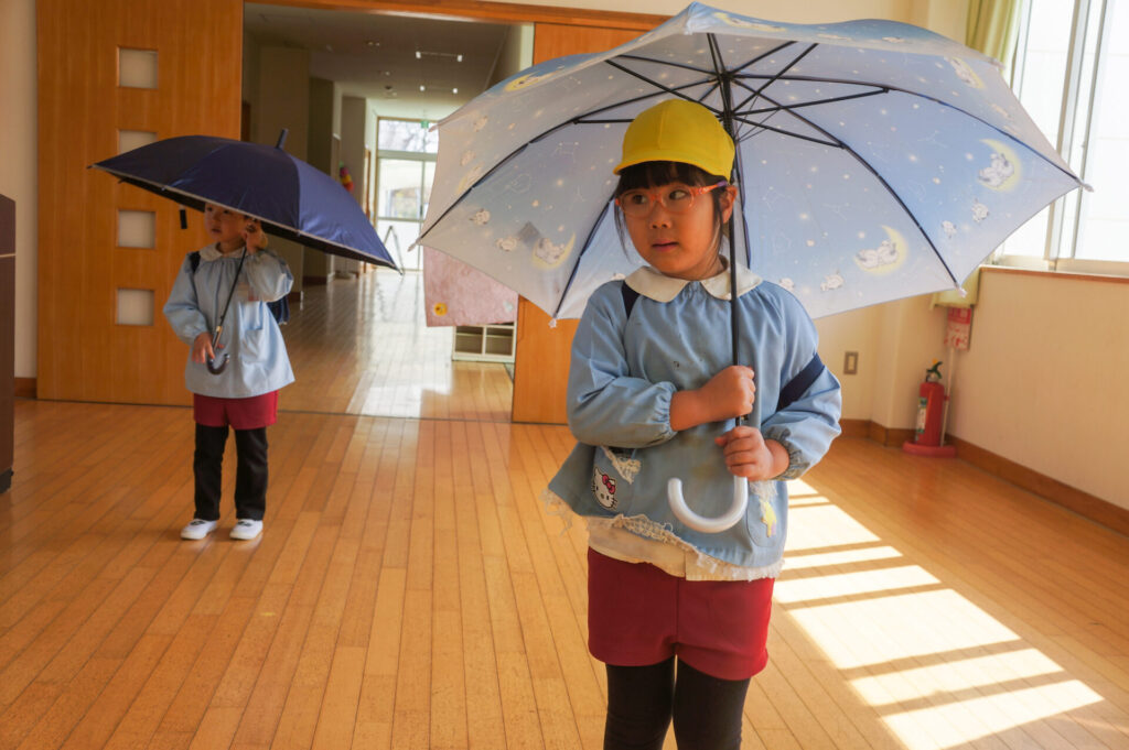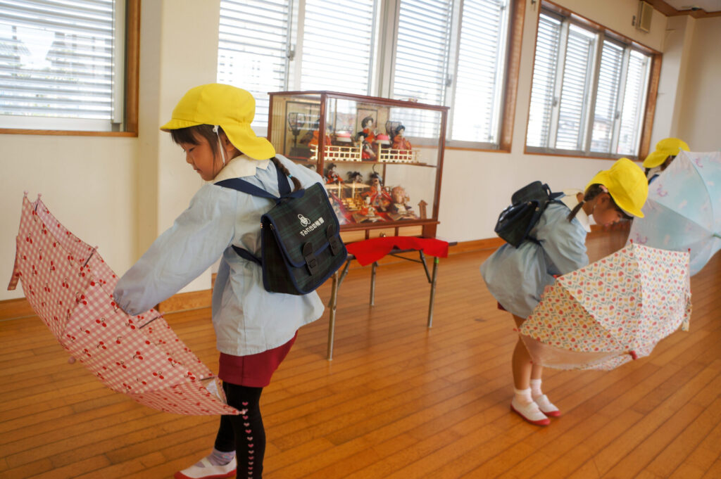 園での様子 就学前 交通安全教室(年長) sumiredaihp 2026年2月24日 年長つき組の園生活も残り少なくなってきました。今日は焼津警察署の交通指導員による「就学前の交通安全教室」を行いました。 4月からはそれぞれの小学校で新しい生活が始まります。今はおうちの方に送っていただいたり、スクールバスで登園していますが、小学校へは徒歩で通うことになります。 講話では信号の意味、道路を渡る時の約束の再確認をしました。今一度、横断歩道を渡る時は、運転手に自分の存在をアピールするためにも、しっかり上げるように、指導員より話がありました。そして、傘の扱いも一人ずつ行ってみました。傘を差す時は人がいないことを確認した上で開くことや雨水が濡れないためのしまい方などを教えていただき、実践しました。 最後は、交通講話のまとめとして、幼稚園前の道路を一人で歩きました。一人で実践すると途端に不安そうな表情をしていましたが、今まで教えていただいたことを思い返しながら安全に渡ることができました。 また、入学までにお子さまと一緒に通学路の確認をよろしくお願いいたします。子どもが歩くと何分位かかるのか、交差点や駐車場などの危険個所を確認する、ランドセルを背負って実際に歩きイメージを高めるなど、子どもたちが安全に登下校できるように通学路を何回か一緒に歩くことをお願いします。