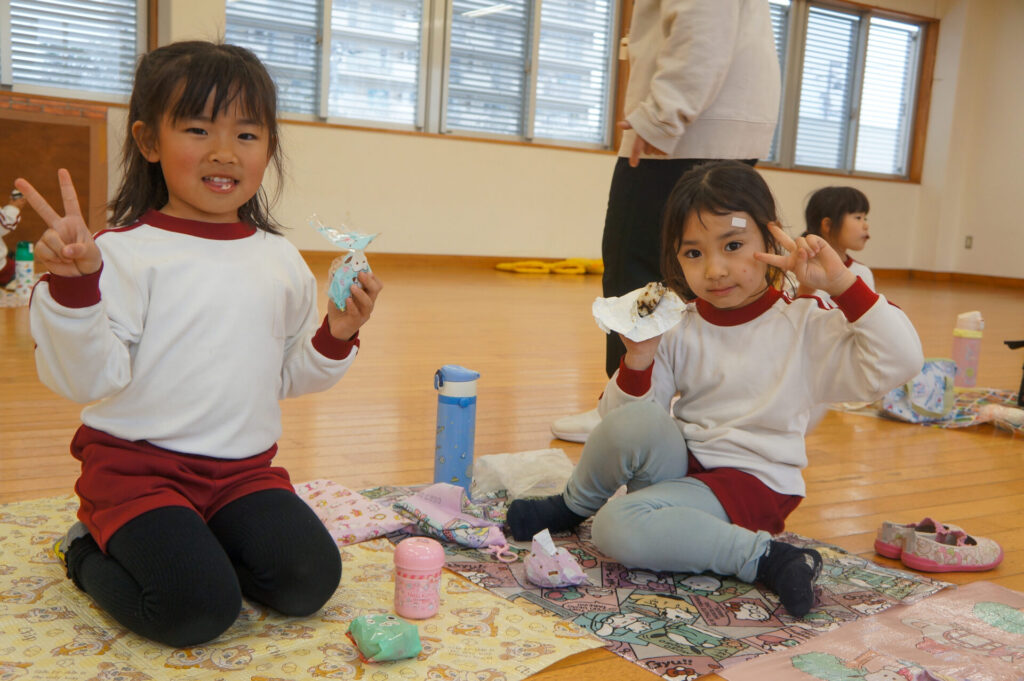 そして、食後も楽しいことがいっぱいです。触れ合い遊びやジャンケン列車など子どもたちが大好きなゲームをたくさんしました。
