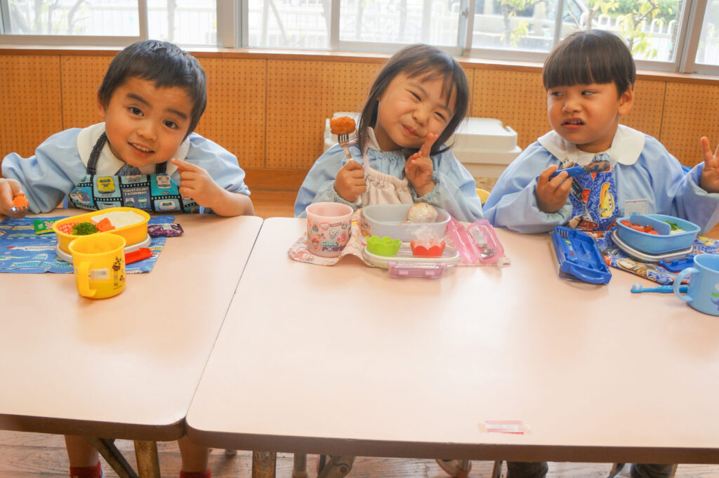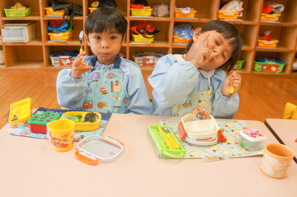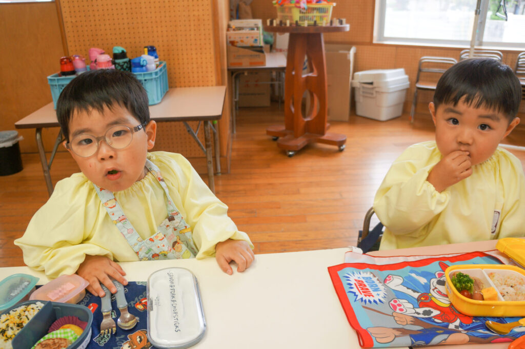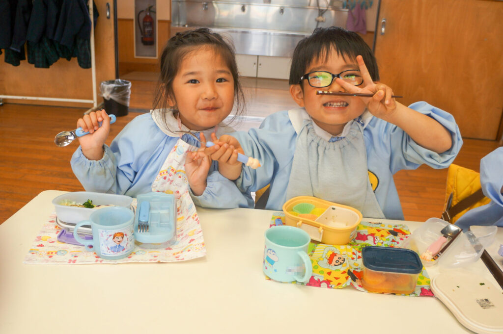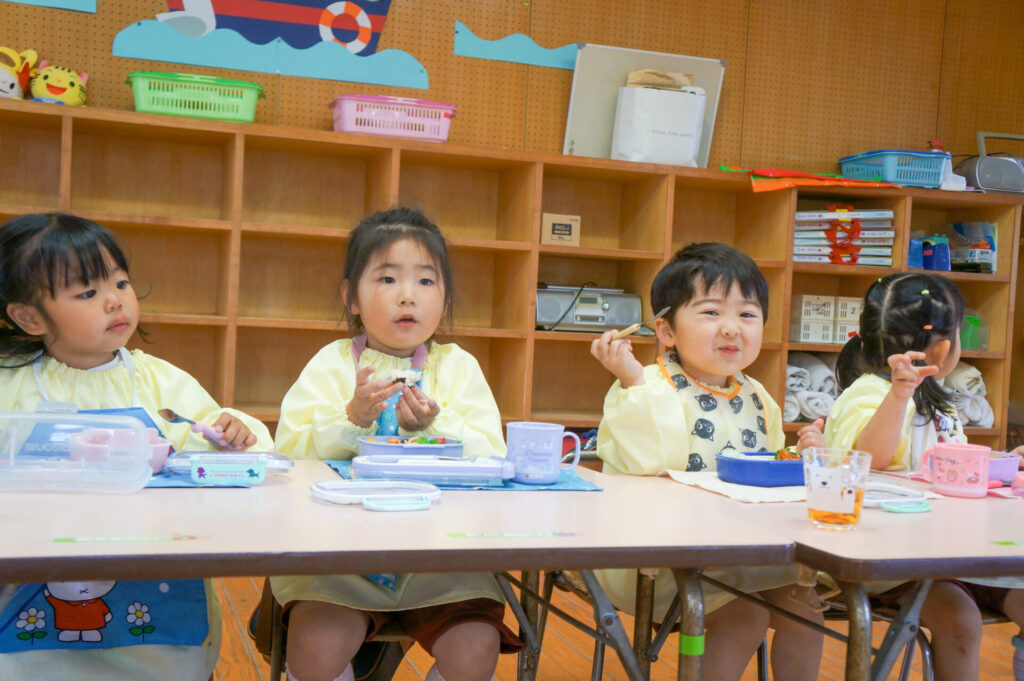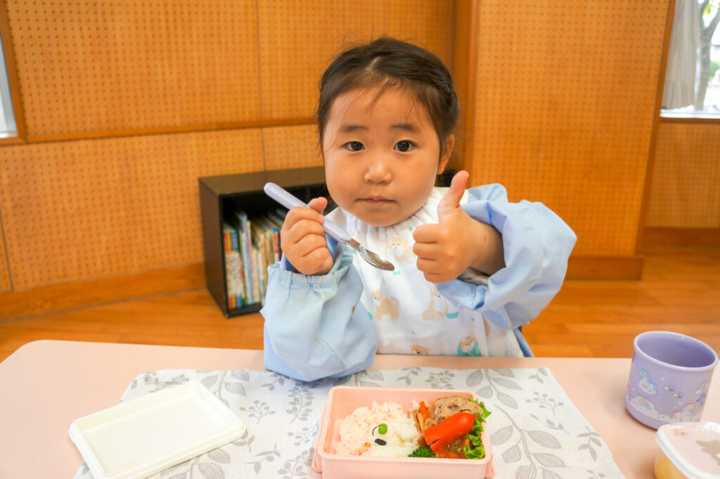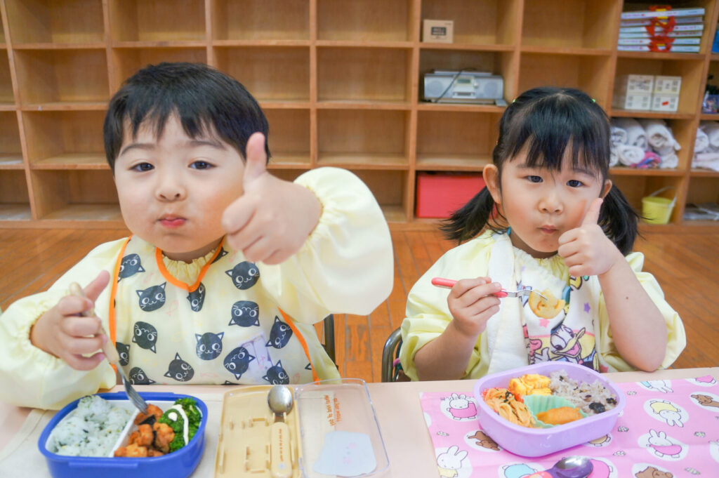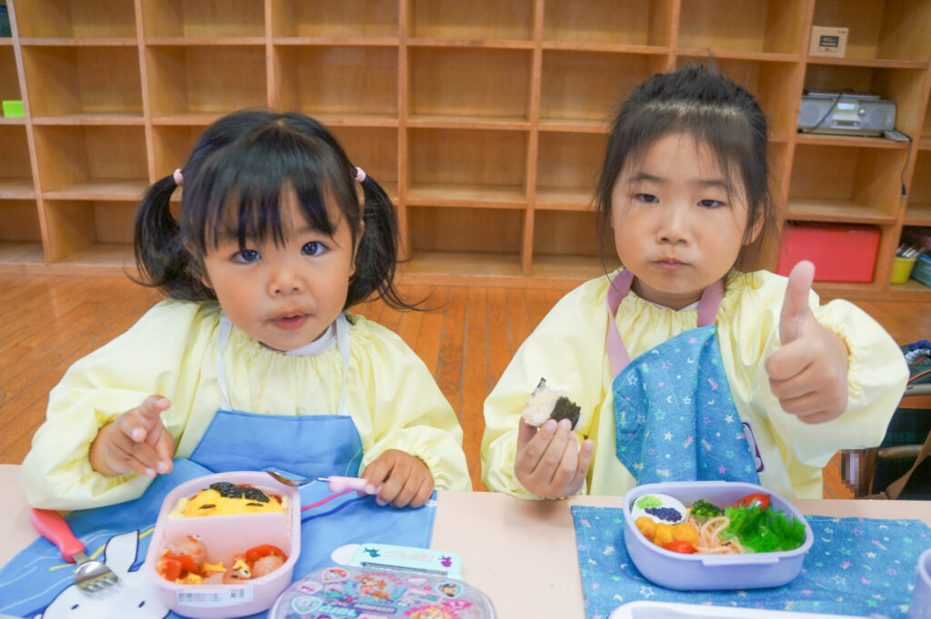 園での様子 お弁当 sumiredaihp 2026年4月15日 毎週水曜日は、子どもたちが楽しみにしているお弁当の日です。おうちの人が作ってくれたお弁当を嬉しそうに食べています! ゆり組の子どもたちは園生活の中で最初のお弁当の日「お弁当食べたい!」と楽しみにしていました。保護者の皆さま、おいしいお弁当をありがとうございます!