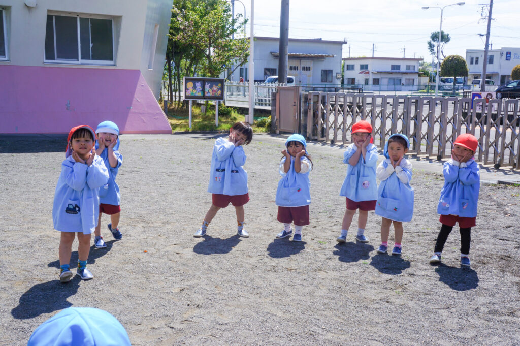園での様子 朝の集い・朝の活動 sumiredaihp 2026年4月16日 今日もとっても天気がよく戸外遊びには最適な一日でした。朝の集いの中で、みんなで「いちご いちご いちご」のダンスを踊ったり、ペアさんと一緒に園周りの散歩に出掛けたしして楽しみました。 園外にでると危険がいっぱいです。隅を歩くこと、間をあけずに歩くことを今後も練習していきます。今年は、歩いていろいろな公園にも出掛けましょうね。 朝の活動では、さくら組がはりきって歌をうたったり、ゆり組は名前を呼ばれて「はーい」と返事をしたり、出席カードにシールを貼ったり毎日積み重ねることでできることも増えてきました。